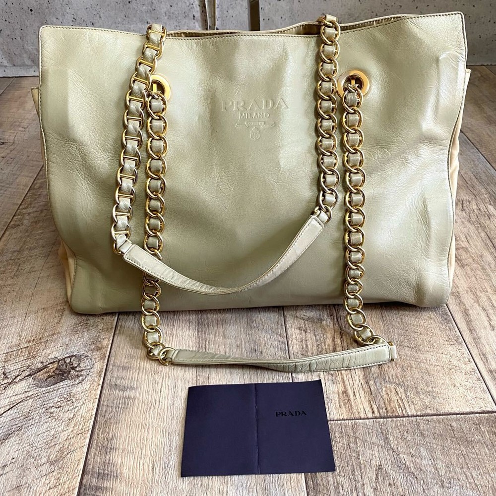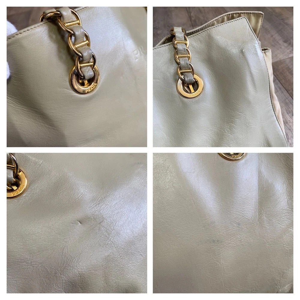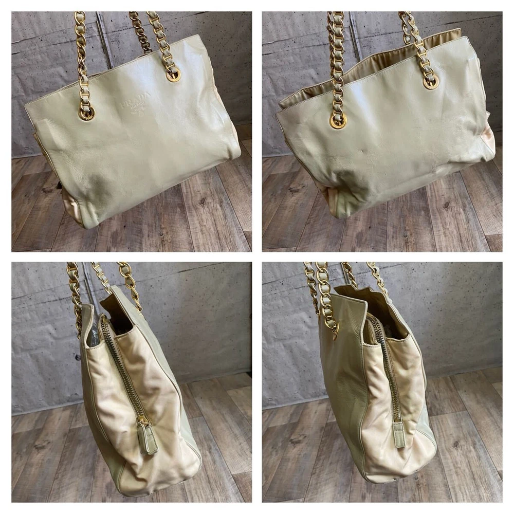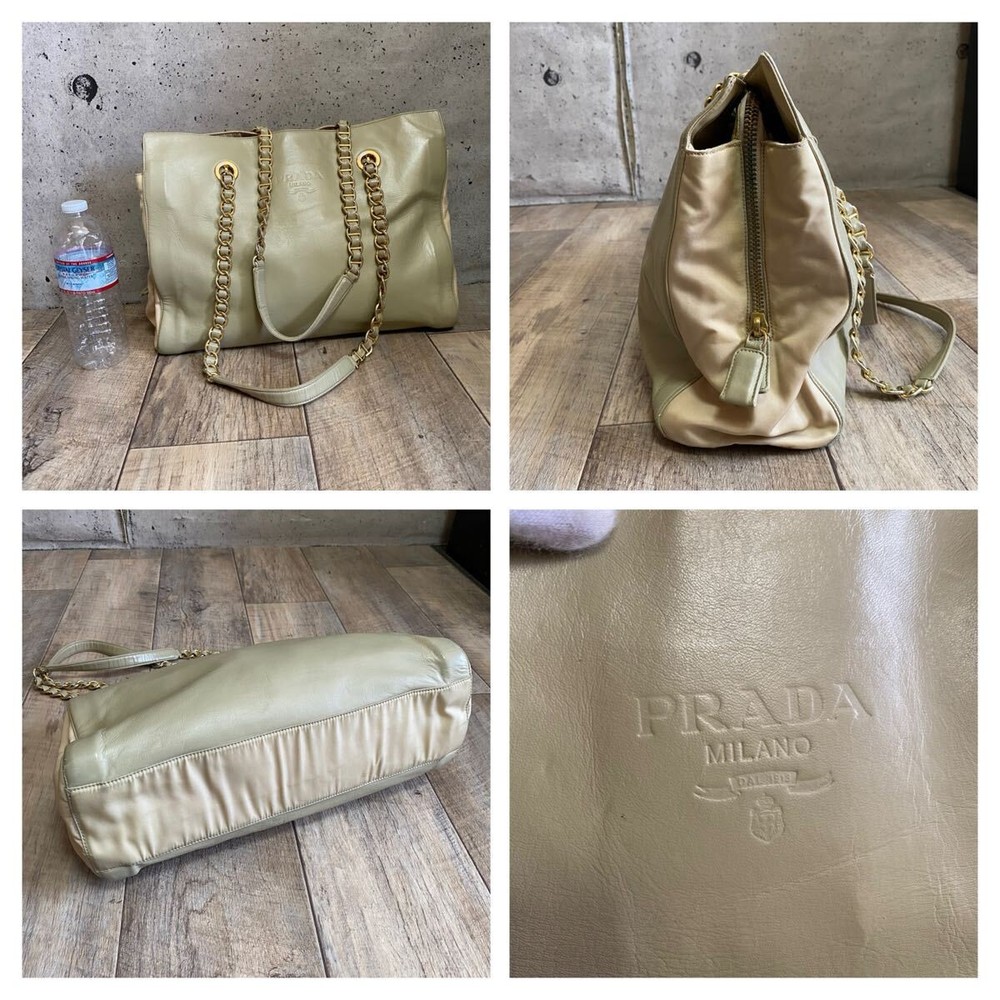 Absolutely love this Prada tote! The khaki beige color is so chic and versatile, perfect for any occasion. The chain detail adds a luxurious touch, and the bag feels sturdy yet lightweight. It’s definitely a rare find, and the quality is outstanding—100% authentic as described. The seller was super responsive and even offered a discount on shipping for multiple items. Highly recommend grabbing this before it’s gone!