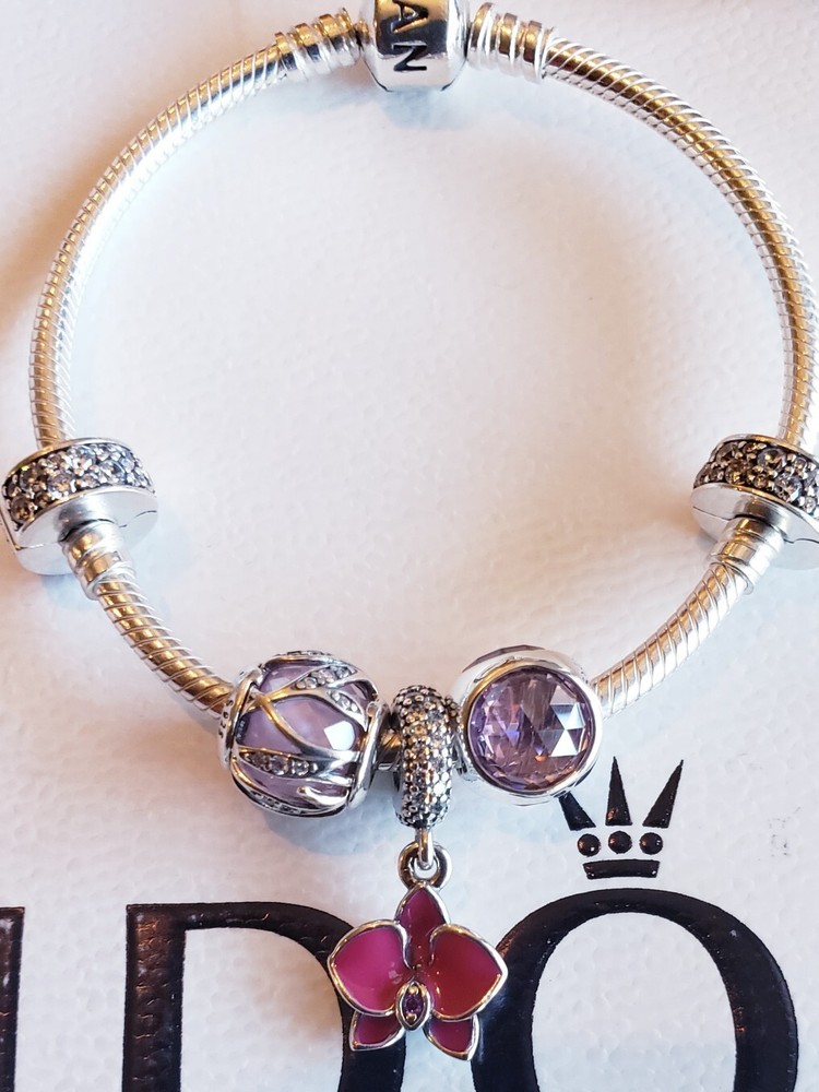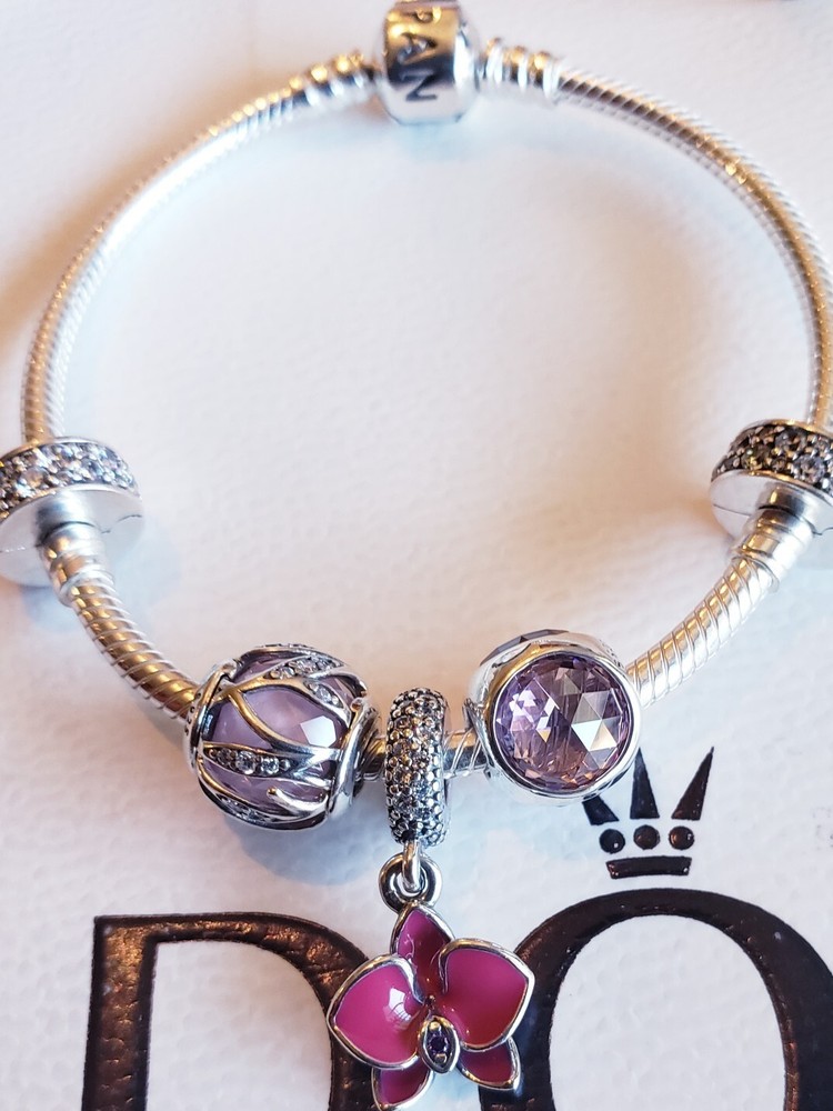 1 Authentic Pandora Moments Bracelet, Sterling Silver,⭐️MOSTLY ALL SIZES AVAILABLE, PLEASE INQUIRE BEFORE MAKING YOUR PURCHASE ⭐️ 1 Authentic Pandora Pink Nature Radiance Charm, Clear & Pink Cz, Sterling Silver 1 Authentic Pandora Orchid Dangle Charm, Sterling Silver, Radiant Orchid Enamel, Clear & Purple Cz 1 Authentic Pandora Pink Radiant Droplet Charm, Pink Crystal, Sterling Silver 2 Authentic Pandora Shinning Elegance Clips, Clear CZ, Sterling Silver 🎉🎉⭐🥳 FLASH SALE 🎉🥳🎉⭐ 🥳FREE SHIPPING INCLUDED 🥳 ⭐🎉🎉🎉HURRY UP & PURCHASE BEFORE SOLD OR PRICE CHANGE 🥳🎉🎉🎉