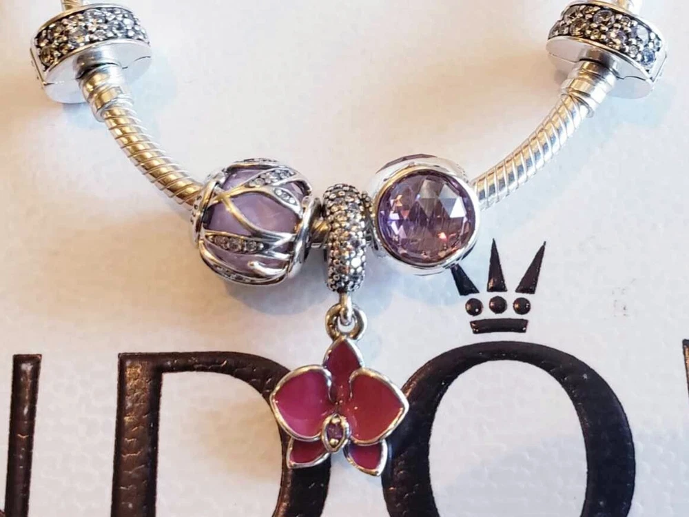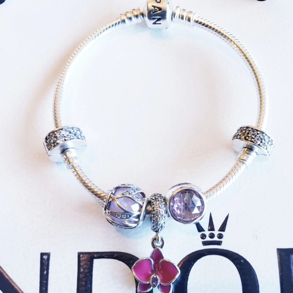 1. Absolutely love this Pandora bracelet set! The sterling silver pieces are stunning—especially the pink nature charm and orchid dangle. The sparkle from the CZs is gorgeous, and the clips add the perfect finishing touch. Super happy with the quality, and free shipping was a nice bonus. Snagged it just in time—totally worth it!