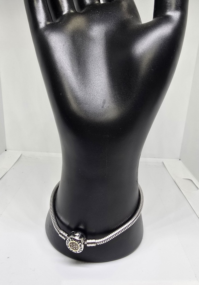 This is an authentic Pandora bracelet made of sterling silver with a heart ferris wheel love hand bag shape. The bracelet length is 7.5 inches and it features a snap closure. The main stone is a round crystal with a good cut grade and a pavé setting style. The bracelet is stackable and has a snake chain type. The charm type is a bead and the bracelet is designed with beauty, christmas, wife, angels, girlfriend themes. The bracelet is perfect for various occasions such as engagement, mother's day, graduation, anniversary, father's day, birthday, christening, confirmation/communion, and valentine's day. The bracelet is made in Thailand and is not antique, vintage, personalized, or customized.