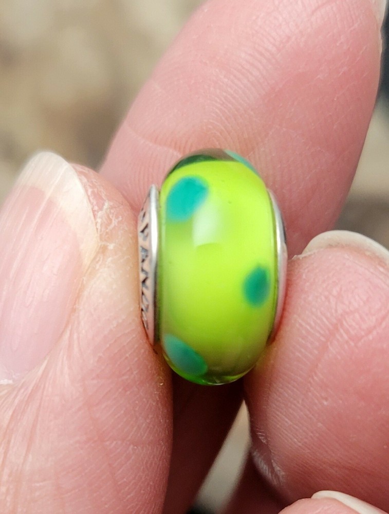 Authentic Pandora Murano Glass Greens Bubbles Charm 925 ALE. Condition is Pre-owned and in excellent condition. Please see all photos. Shipping USPS.