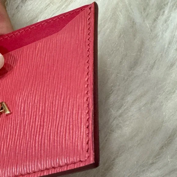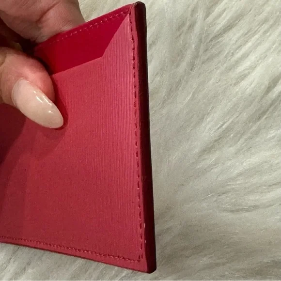 This Prada card holder is absolutely stunning—the hot pink leather is vibrant and luxurious. It’s in flawless condition, no bends or corner wear, and fits multiple cards neatly. The serial number confirms authenticity, and the compact size is perfect for any bag. Love it!