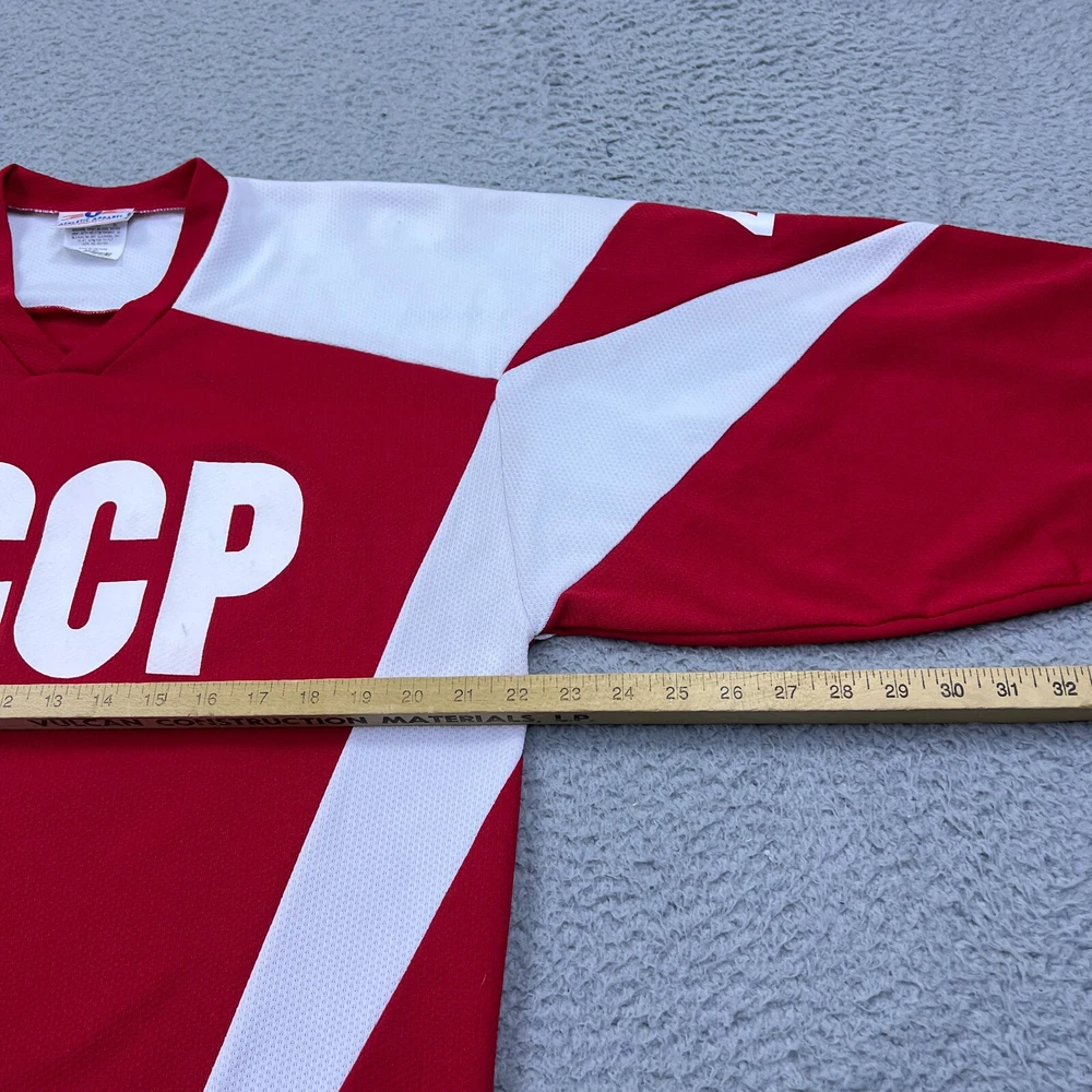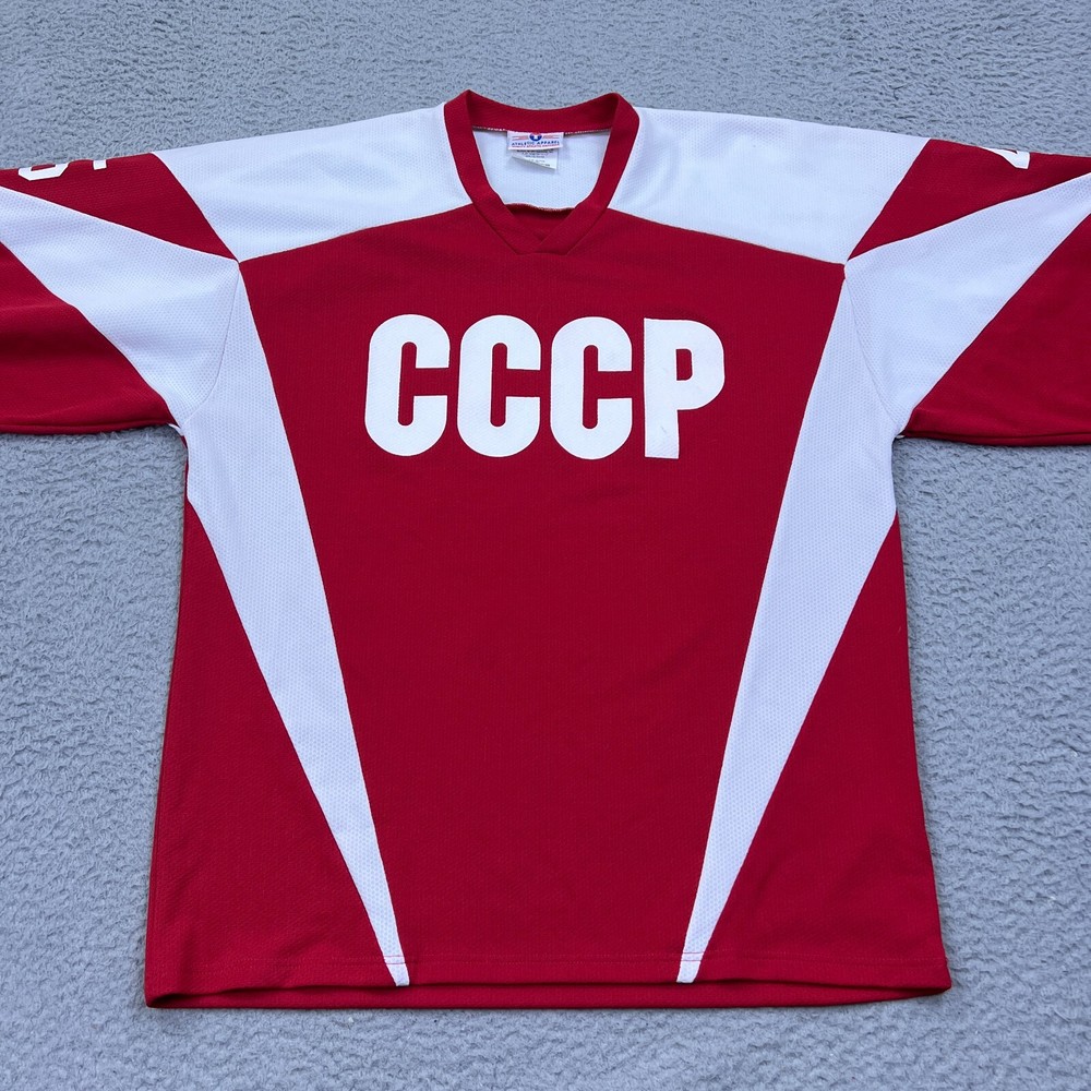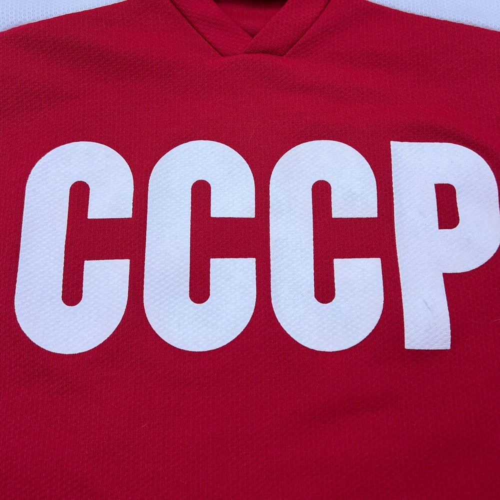 Seller Notes: “Good used condition with light wear” Product: Single Team: Soviet Union National Hockey Team CCCP Country/Region of Manufacture: Vietnam Sport: Hockey Gender: Men Original/Reprint: Original Brand: Teamwork Athletic Apparel Color: Red Size: M Player: Trump Original/Reproduction: Original League: NHL