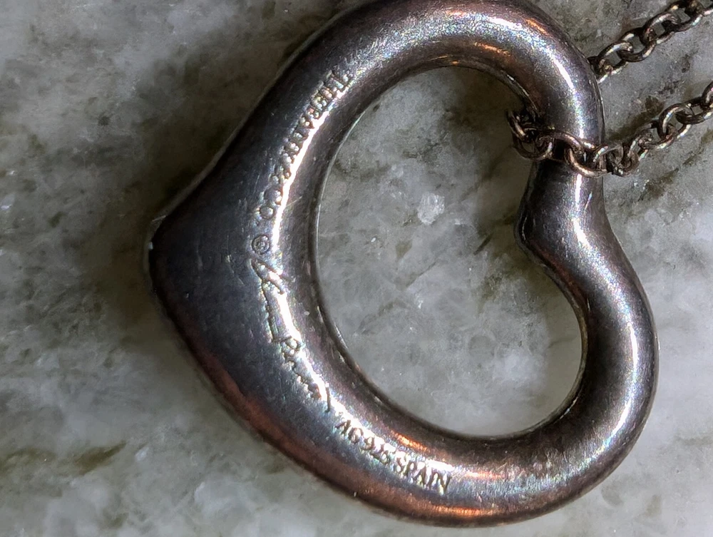 Authentic Tiffany & Co Open Heart Necklace Ag925 Silver Has original bag and chain holder. Loved necklace that can be cleaned up and polished.