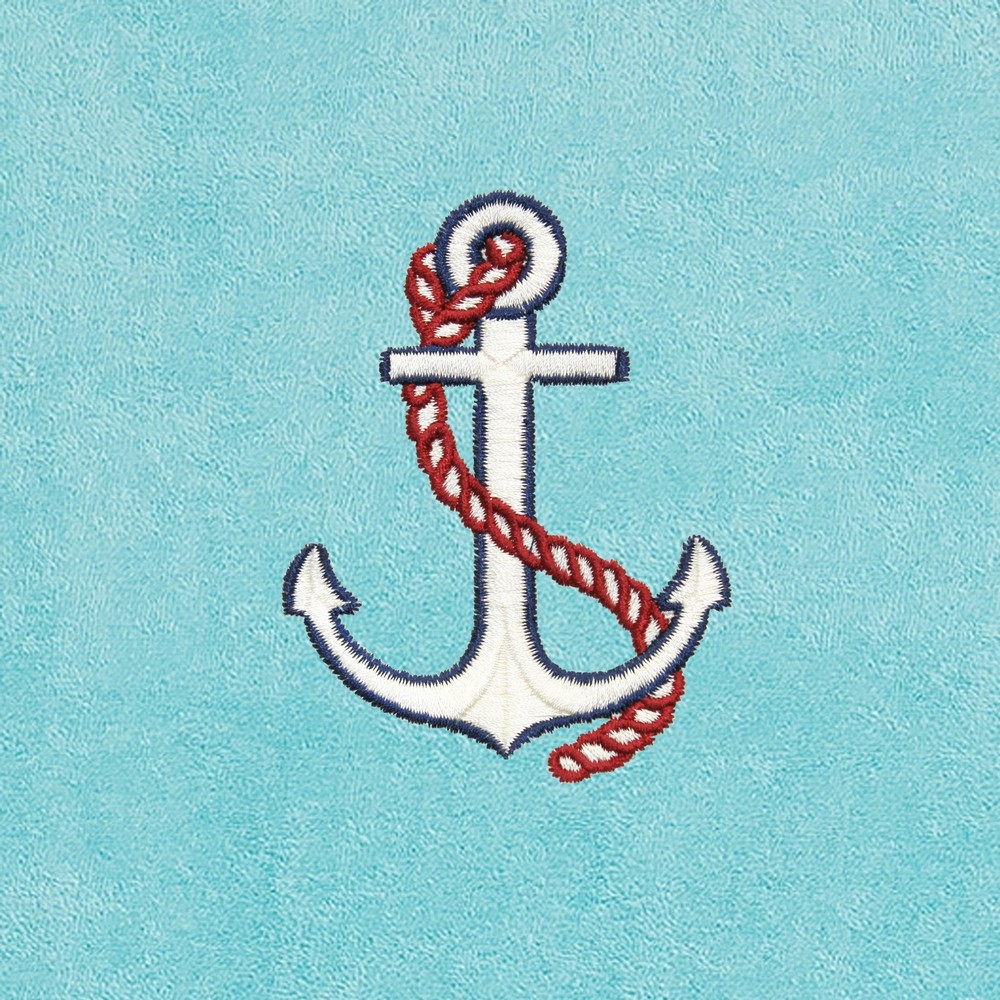 Authentic Turkish Cotton Embroidered Anchor Aqua Towel Cover with Convenient Pocket