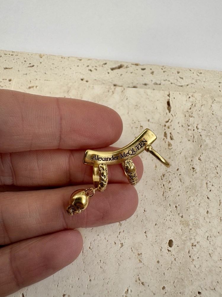 Alexander McQueen ear cuff in antique gold toned metal with iconic skull detail. Authentic. Unisex. For left ear. It will add a modern edgy touch to any outfit. Sold with plain pouch. Happy to combine postage.