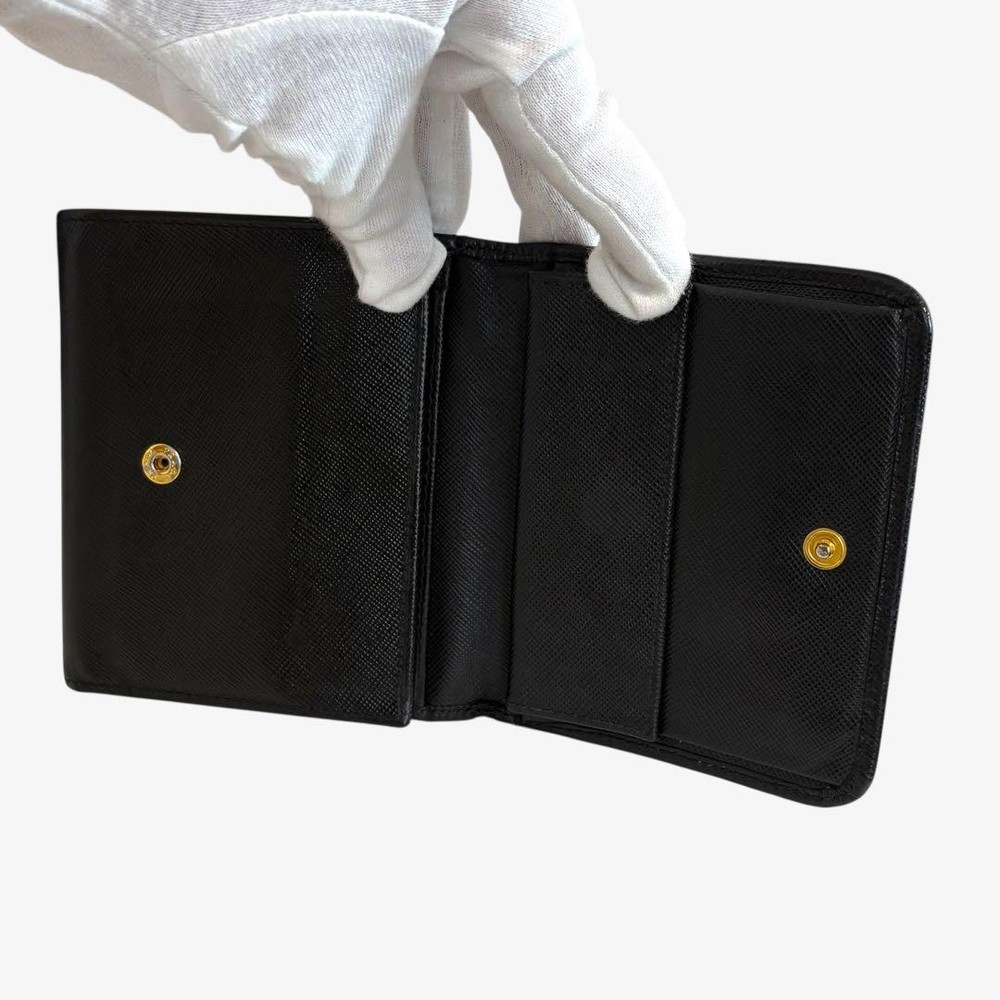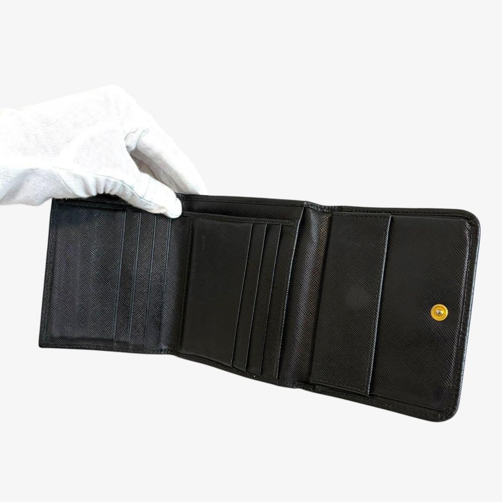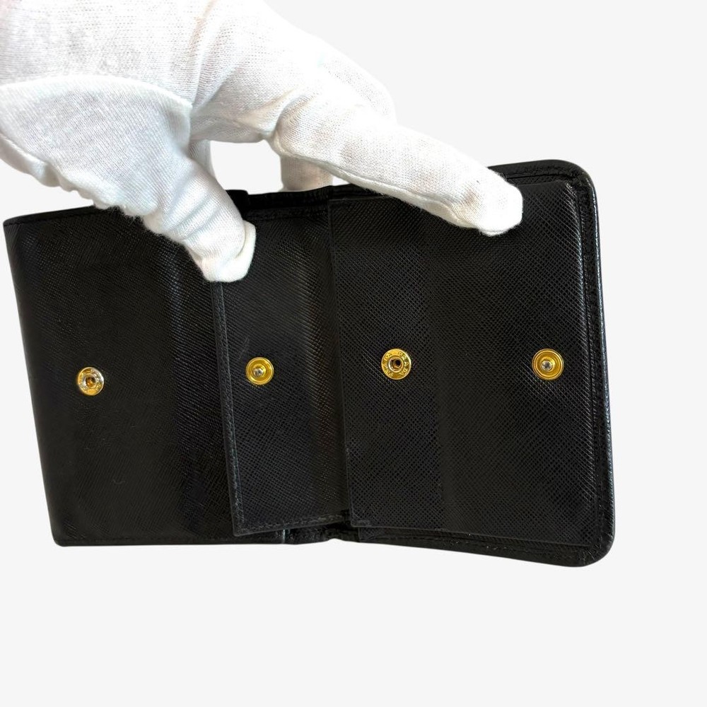 Prada Saffiano Trifold Wallet Black Authentic Used Key Features - Brand: Prada - Product: Tri-fold Wallet - Model: Not specified - Color: Black - Material: Saffiano Leather - Size: approximately 3.9 inches (10cm) high x 4.3 inches (11cm) wide x 0.8 inches (2cm) thick - Features: - 6 card pockets - 1 coin pocket - 1 bill compartment - 2 additional pockets - Condition: Excellent, minimal signs of use, no noticeable scratches or stains, hardware is shiny, button closures function well - No accessories are included unless noted in the title or product description. If you have any questions, please ask before purchasing. Specifications Brand Prada Country Japan Color Black Product Description Item Title Prada Trifold Wallet Saffiano Black Payment Supports managed payments Please pay within 5 days after auction is finished. About Us We are located in Japan. It's our pleasure to make you happy by proposing our recommend item. If you have any questions or request about items, please feel free to ask us. International Buyers - Please Note: -Import duties, taxes, and charges are not included in the item price or shipping charges. These charges are the buyer's responsibility. -Please check with your country's customs office to determine what these additional costs will be prior to bidding/buying. -These charges are normally collected by the delivering freight (shipping) company or when you pick the item up - do not confuse them for additional shipping charges. -We do not mark merchandise values below value or mark items as - gifts - The US and International government regulations prohibit such behavior. Thank you for your understanding.