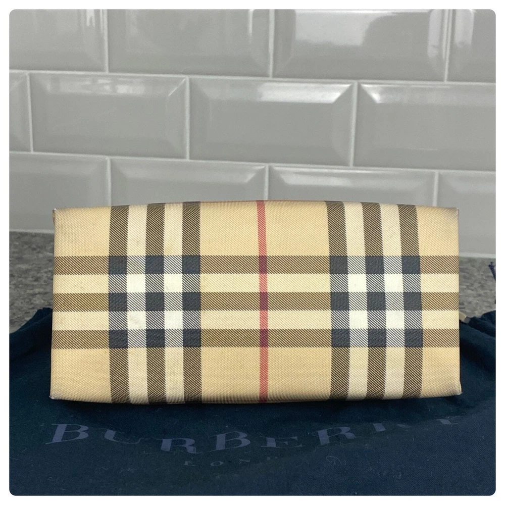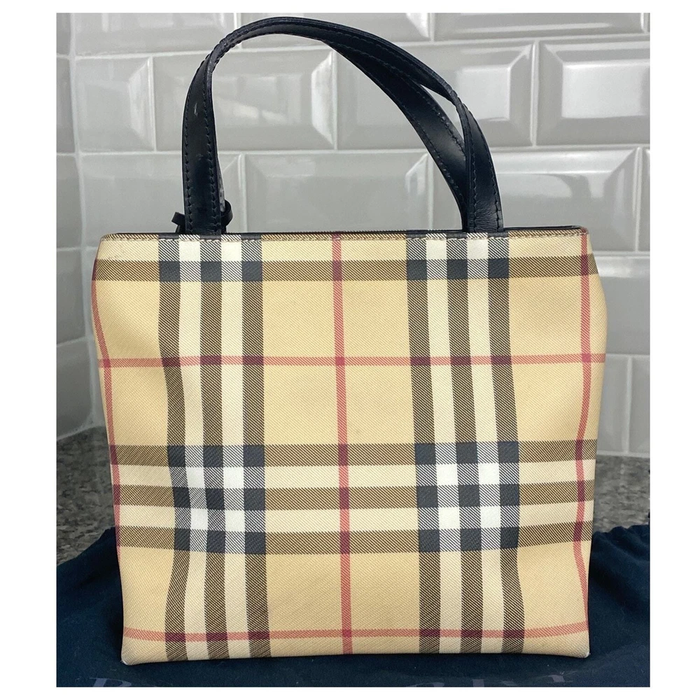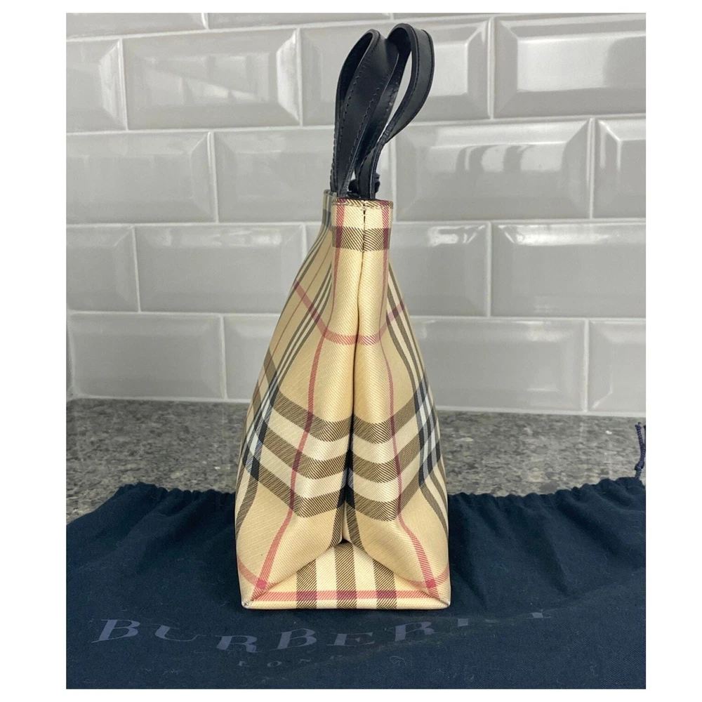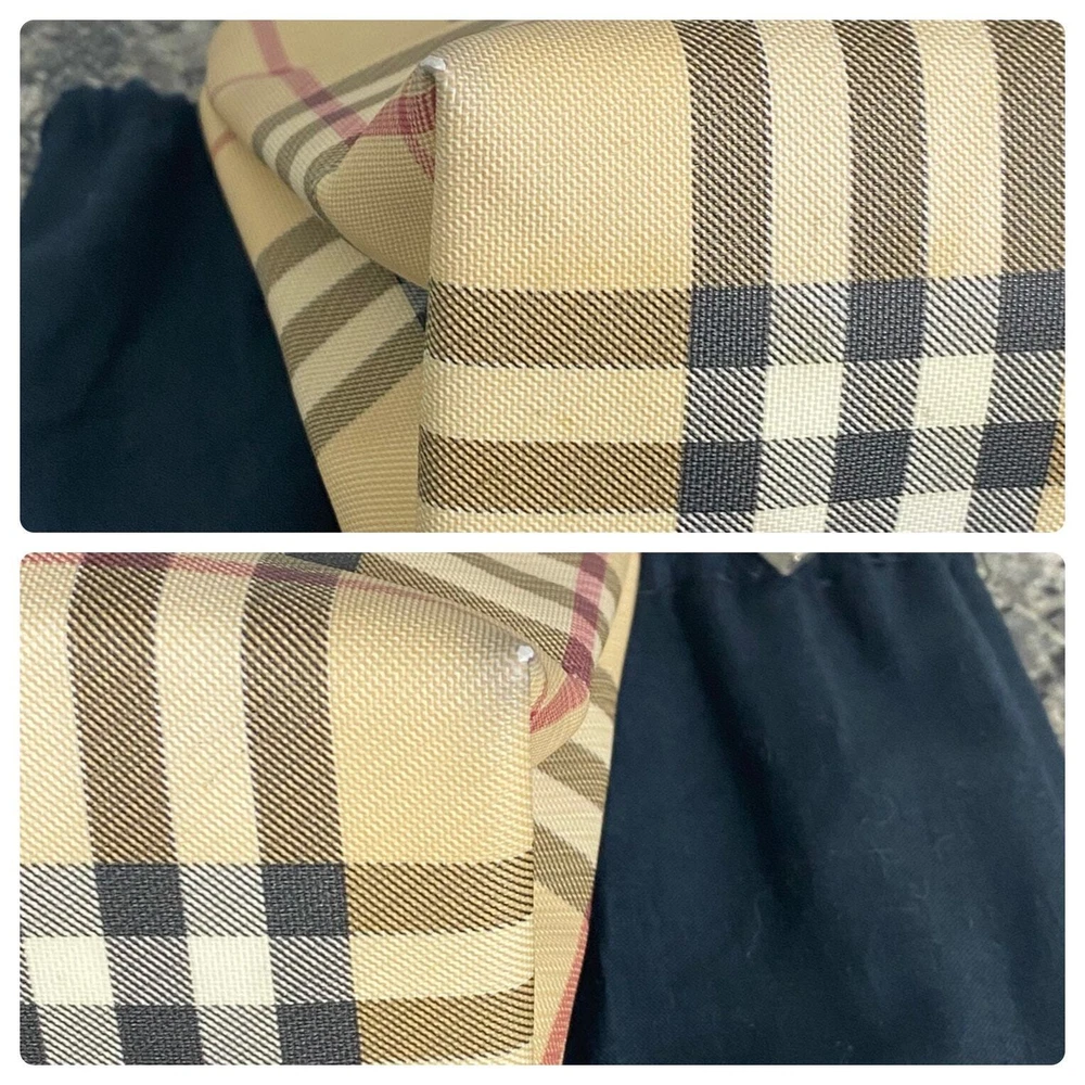 Authentic Vintage Burberry Nova Check Mini Tote Nova check pattern Tan/Beige multicolor Coated canvas Silver hardware Black leather trim Dual flat top handles Lined Single zip pocket at interior wall Magnetic snap closure at top Dust bag included Coated canvas Leather Mini Handle drop: 4.25" Height: 7.75" Width: 8.75" Depth: 4" Please Note - All Measurements Were Taken By Hand And Are Approximate; Slight Variations May Occur Made in London Pre owned Good condition Normal wear Hardware has minor scratches/scuffs, if any Signs of wear on the corners and the leather Interior is in excellent condition