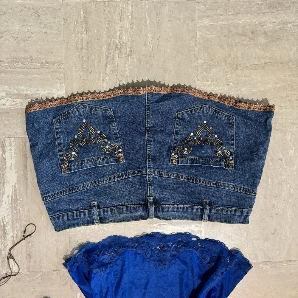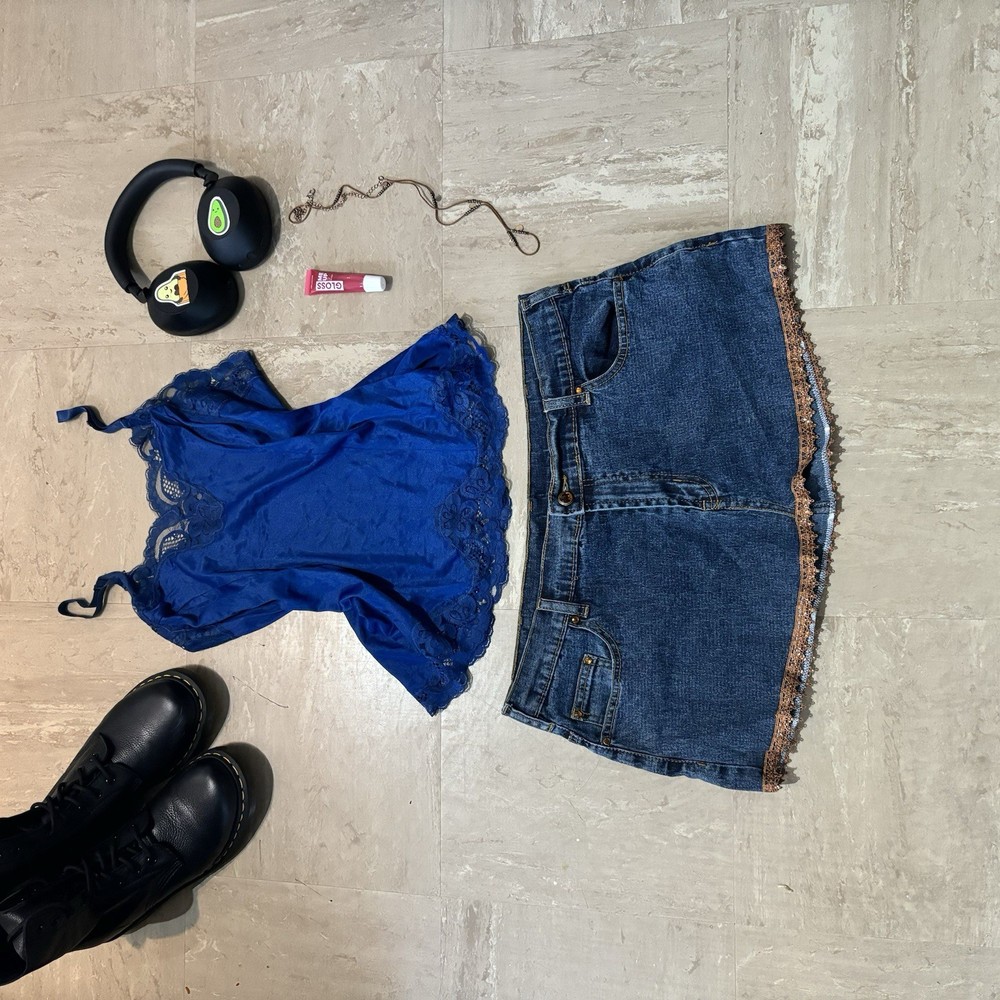 Extremely Rare vintage Y2K denim mini skirt - the exact 2000s style selling out everywhere. It's a must have! Ships today! Measurements: Waist: 36 inches Length: 11 inches Size guide: L - stretch DM for appropriate discounts/info #vintage #trending #y2k #90s #2000s #retro #indie #grunge #coquette #minimalist #softgil#streetwear #cottagecore #romantic #festival #tumblr #cami #camisole #tanktop #strappytop #lacetrim #satintop #sliptop #bustierstyle