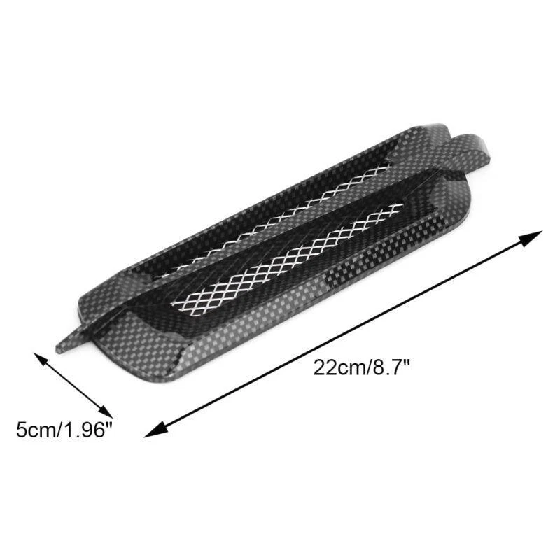 Features: Made by plating finished ABS plastic material, not easy fading under any rigorous condition. Shaped with net grid design style, create classy and distinctive exterior for your car. Adhesive backing for easy installation, no drilling required, just stick on desired place. and high reliability. Great decoration for most of cars and vehicles. Specifications: Condition: brand new Material: ABS Color: chrome silver, carbon fiber (optional) Size: 22 * 5cm / 8.7" * 1.96" Quantity: 2pcs Package Weight: approx.100g Fitment: universal for most of cars and vehicles. Package List: 2 * Vent Hole Covers Notes: 1. Please allow 0.5 - 1 inch error due to manual measurement, thanks for your understanding. 2. Make sure the target location is clean enough before installation.