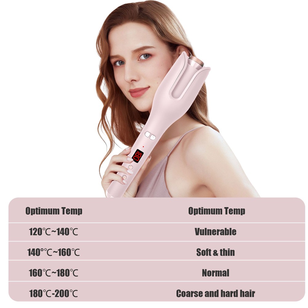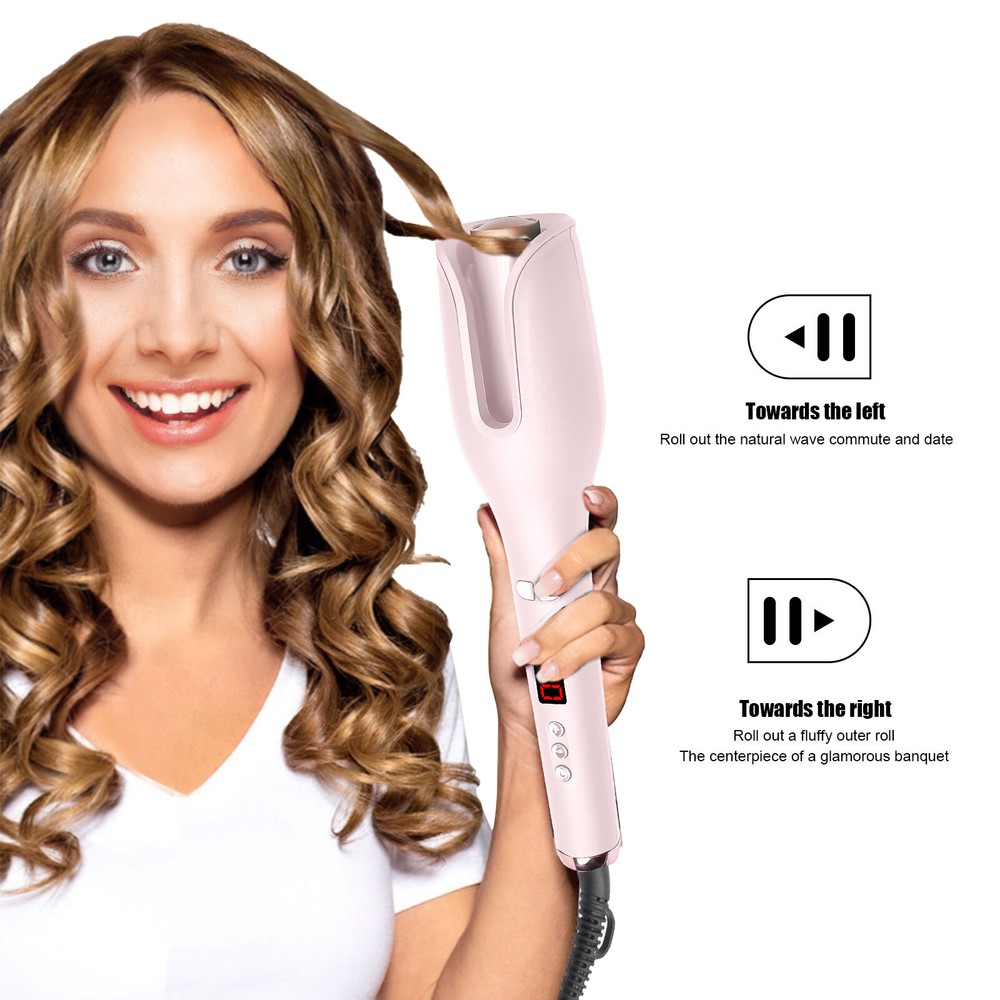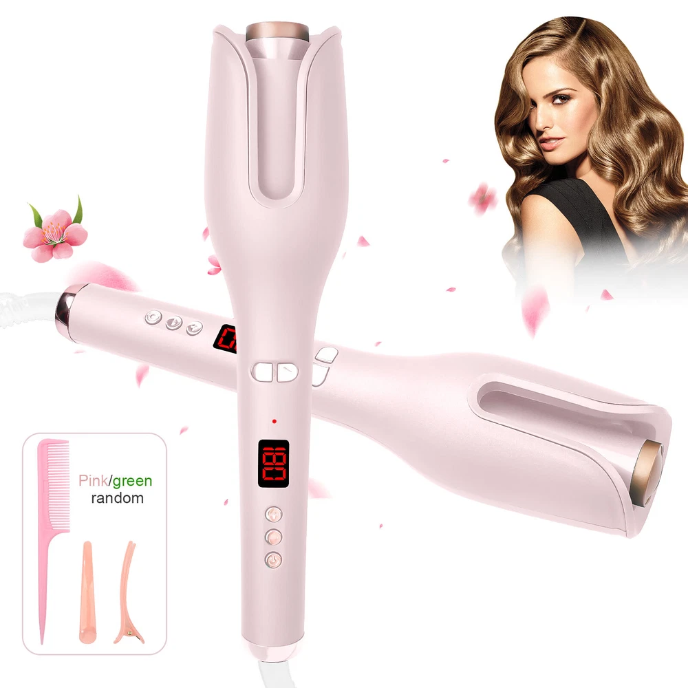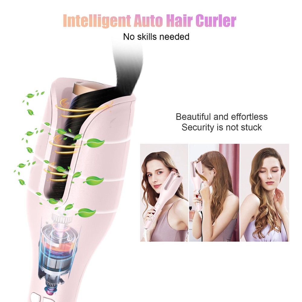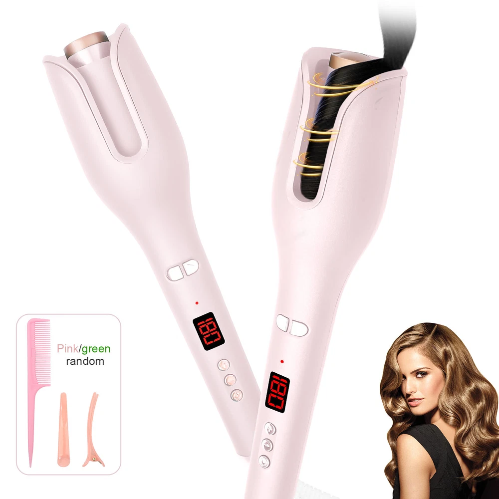 Auto Hair Curler w/ Temps LCD Display Anti-Tangle Auto Shut-Off for Hair Styling Auto Hair Curler, Automatic Curling Iron Wand Big roll auto hair curler rotating anti-perm does not hurt hair Automatic curling iron Rapid heating, 360 degrees three-dimensional heating ---- built-in PTC heating tablet, after reaching the set temperature, constant temperature, do modeling to reduce hair high temperature damage Face anti-hot design, safe modeling - anti-hot shell, double anti-hot insulation layer, no need to worry about the risk of hot face It's quiet, it doesn't make any noise, LCD screen, curling iron can adjust different temperatures One hour can only power off - built-in intelligent chip, 60min no operation in the case of curling iron will automatically shut down, guard your safety Round handle for a comfortable grip. With negative ion indicator light 360 degree tail line, free rotation, convenient storage How to Use it: Step 1: Long press the power button for 3s to switch on the auto hair curler. Step 2: Select the temperature you need, wait for the pre-heating to finish. Step 3: Select and smooth a strand of your hair (1cm-3cm diameter is best), put it into the slot and pull it downward. Step 4: Long press the L/R button for 7-8s, release the direction button when the hair totally wrapped in. Step 5: After releasing the direction button, pls don't release your hair and wait 8-12s Step 6: Move the curing iron away from you to release the hair from the curing slot. Warm Tips: This curler will stop working and turn off to prevent the hair from being tangled if it curls too much hair or works incorrectly. This is not a quality issue with the product, it is to protect the hair from damage. If hair does get stuck in the slot, just spin the curling dial the opposite direction to release the hair. Please only put hair in ONE side of the barrel. Do Not put too much hair in Both sides. Press the direction button and it will start to wind. When it stop winding, release the button but don't release your hair. Then wait for curl fixing until it’s at your desired time. Package List 1 x Auto Hair Curler 2 x Hair Clip (The colors are random) 1x Hair Comb(The colors are random) 1 x User Manual