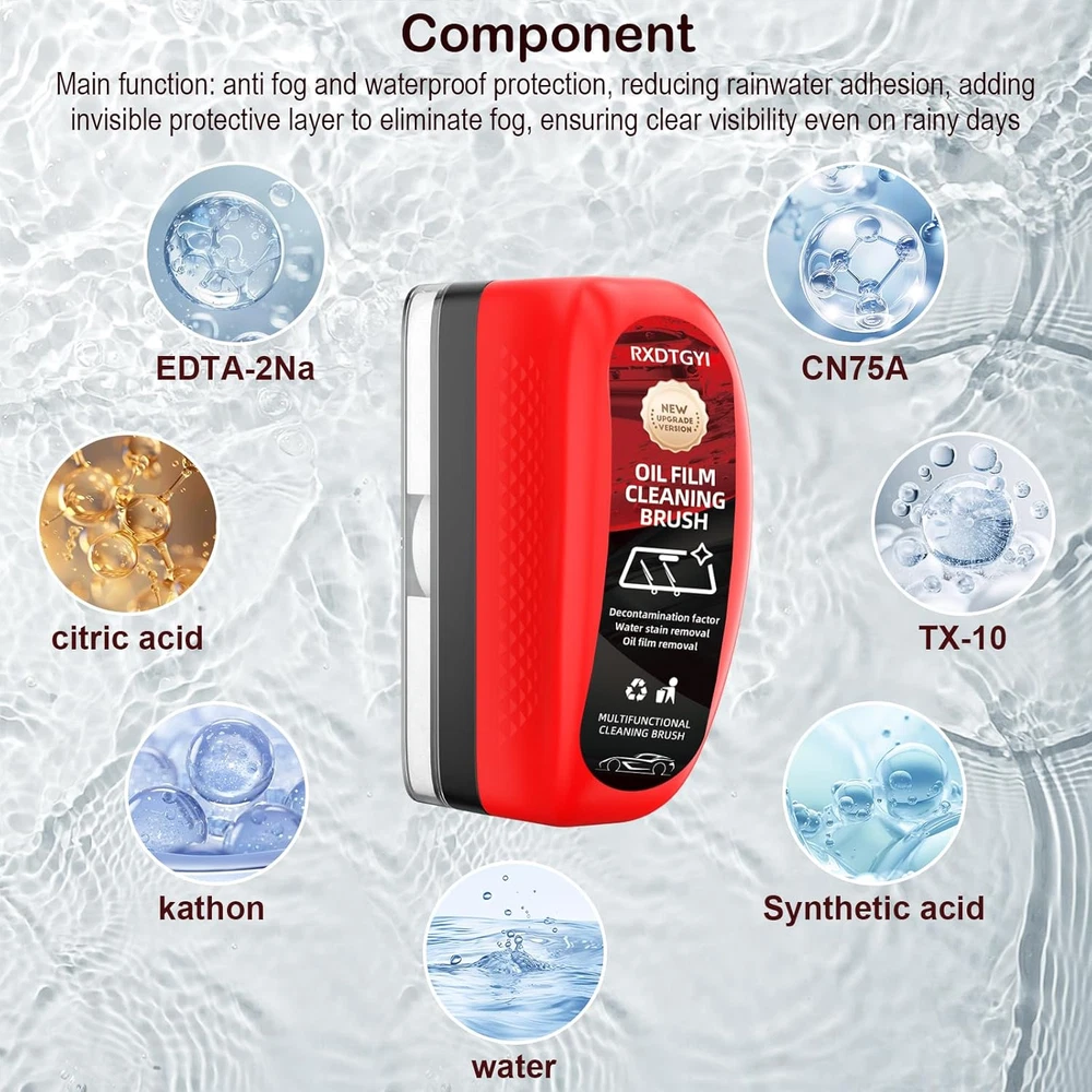 ⭐【Car Glass Oil Film Cleaner】(The product already contains: Oil Film!!!)Car Glass Oil Film Cleaner Adopting a professional formula, this car glass oil film cleaner rapidly breaks down and efficiently removes stubborn oil film, restoring the original clarity of your glass for a clearer view and safer driving experience. ⭐【Anti-fogging protection】With reduced rainwater adhesion and an invisible protective layer, eliminate fogging and clear vision on rainy days. Enjoy safe, comfortable driving with this car glass oil film cleaner.the glass cleaning brush is practical, portable, and easy to use. Perfect for regular maintenance and deep cleaning. ⭐【Easy Grip and Reach】Our oil film stain removal cleaner liquid brush design makes it easy to hold and clean even the most challenging corners. Say goodbye to struggle and hello to effortless cleaning in seconds, whether it's front windshields or side window. ⭐【Environmentally Conscious】Our glass oil film remover is designed to provide a no hassle cleaning experience that ensures no damage to your car's paintwork or rubber seals. What's more, it's eco-friendly and leaves no lefts after use. ⭐【Multi uses 】Seamlessly cleans and maintains various glass surfaces; ideal for automotive glass like windprotects and window, as well as home window and bathroom doors, ensuring a wide range of applications and crystal-clear views. Product Description