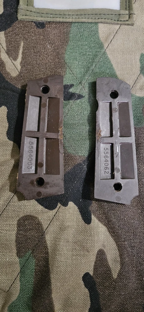 Auto Ordnance 1911 GI-like Grips. Missing medallion on left panel. Material seems kinda like bakelite or nylon.