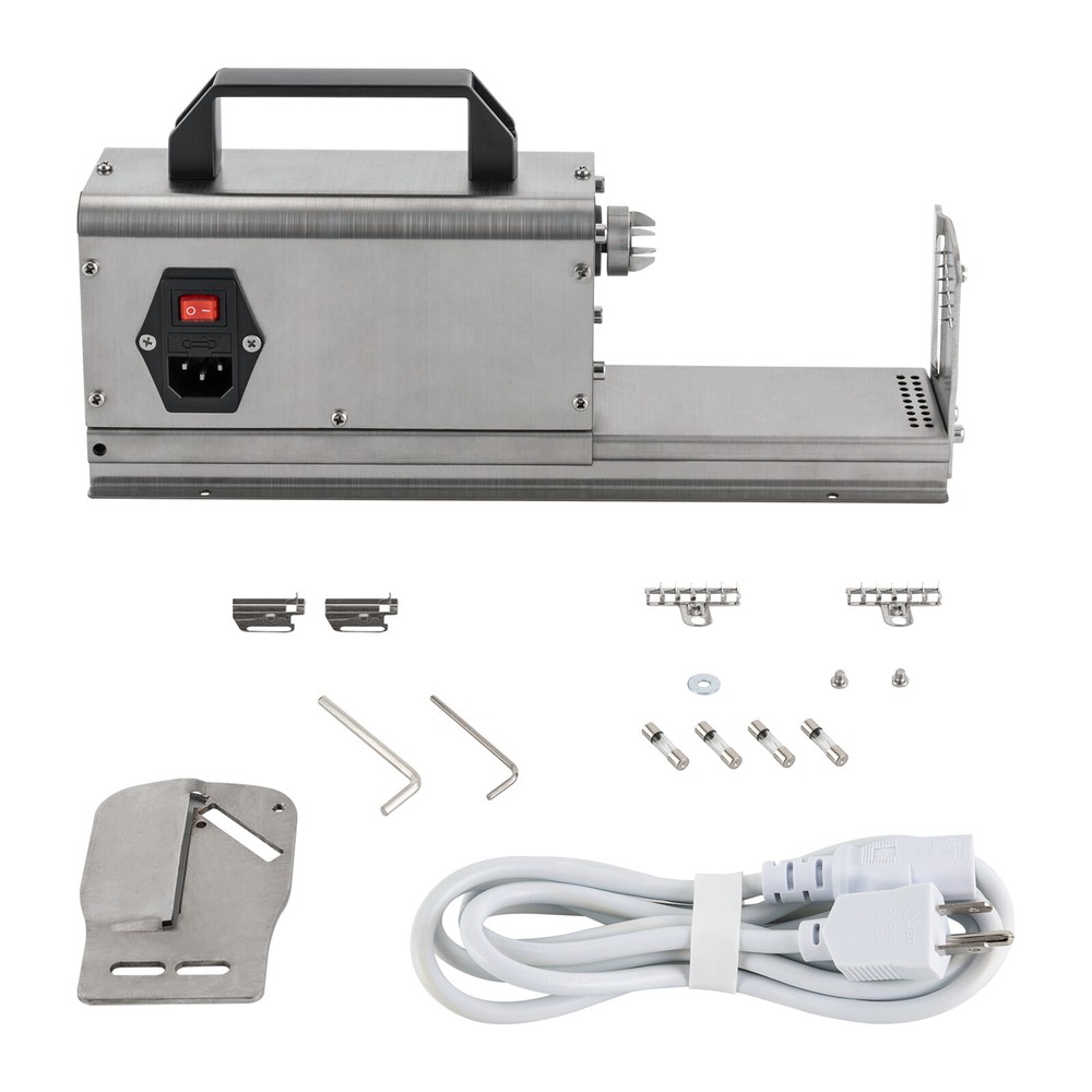 Electric Twisted Spiral Potato Cutter Auto French Fry Twisted Potato Tower 110V Specifications Model: 528-8(3 in 1) Color: Silver Style: Modern Shape: Rectangular Blade Shape: Round Material: Stainless Steel Process: Cnc Machining, Polishing, Stamping Recommended Uses for Product: Vegetable Operation Mode: Semi-automatic Power Source: Corded Electric Plug: Us Standard Voltage: 110v Frequency: 50/60hz Power: 40w Rotate Speed: 200r/Min Power Cord Length: 1.5m/4.9ft Blade Thickness: 2.7mm/0.1inch The Thickness of the Slice: 2mm/0.078inch, 2.5mm/0.098inch Product Size: 34.5*8.5*12cm/13.58*3.35*4.72inch Package Size: 42*19*15cm/16.5*7.48*5.9inch Net Weight: 3.2kg/7.05 Lbs Gross Weight: 4kg/8.8 Lbs Package Included 1* Electric Potato Twister 1* Handle 1* Sharp Blade 1* Power Cord Other Accessories for Installation Description Come and Enjoy the Delicious Food with Your Family and Friends Now! Our Electric Potato Twister Has High Quality, Exquisite Workmanship, 3 in 1 Functions, Great Cutting Effect, and Various Thoughtful Designs, Making It Convenient and Easy to Use. with It, Your Kids Will Eat Their Favorite Potato Chips or Your Customers Will Have More Choices. Key Features 3 in 1 Electric Potato Twister: It Can Cut Potatoes into Spiral Potato Chips, Curly Fries, and Potatoes Wrapped Around Hot Dogs, Adding Special Dishes to Your Shop and Satisfying the Different Needs of Your Customers. Efficient Cutting: Adopting an Ac 110v Motor with 200r/Min Speed and a High-strength Blade, This Machine Can Easily Cut Even and Beautiful Slices of 0.078" and 0.098", Providing You with Ideal Potato Chips. Easy to Install&Use : with the Simple Structure, Complete Accessories, and User-friendly Buttons, You Can Install and Use This Machine Easily. You Can Also Secure It to the Workbench Through Pre-drilled Holes on the Base to Ensure Stable Use. Easy to Clean: Because of the Smooth Surface with a Polishing Treatment, You Can Wipe the Dirt from This Machine with a Cloth. Protective Package: to Prevent the Product from Being Damaged and Bumped During Transportation, We Packed It with Environmental-friendly Pearl Cotton to Protect Your Products to the Maximum Extent Possible. Details Practical Handle: It Allows for Convenient Operation While Protecting Your Hands from Hurting and Ensures Easy Carrying with less Effort. Powerful Accessories: the Spare Fuses and Small Blades Ensure Convenient and Easy Replacement When Needed, Which Can save You Money Without Additional Purchase and Prolong the Machine's Lifespan. Long Power Cord: the 4.9ft Power Cord Allows You to Have Plenty of Disposable Lengths, Thus Reducing the Limitation When You Use It. Application It Is Specially Designed for Commercial and Household Use. It Is Ideal for Homes, Western Restaurants, Snack Bars, Fast Food Restaurants, Hotels, Apartments, Booths, Etc. to Cut Potatoes, Yams, Taros, White Radishes, Carrots, Cucumber, Onions, and Other Vegetables Without Kernels. How to Use Stick in the Peeled Potato with a Bamboo Stick(Not Included). Push the Bamboo Stick into the Center of the Hole. Connect the Machine to the Power Supply and Turn on the Switch. Slowly and Gently Push the Handle. The Delicate Potato Tower Is Finished. Push the Handle Back to the Proper Position and Turn off the Power. Notes There Is a Blue Plastic Seal Film Around the Entire Unit to Prevent the Machine from Scratches While Shipping, Please Remove It Before Using. This Machine Is Not Suitable for Foods That Are Too Soft and Have Kernels. Please Be Careful Not to Put Your Fingers on the Blade to Avoid Scratching During Operation and Cleaning. When Cleaning and Maintenance, the Power Should Be Cut off to Prevent Accidents. After the Work Is Finished, Please Gently Wipe the Machine with a Non-corrosive Detergent and a Wet Towel. Please Do Not Wash the Machine Directly with Water! You Can Place a Towel Under This Machine to Prevent It from Scratching the Countertop. Please Allow the Slight Color Difference Caused by the Shooting Light and 1-3cm Error Due to Manual Measurement, and Make Sure You Do Not Mind Before You Order. Payment Delivery details Terms of sales About us Contact us Payment We accept ebay payment 。 Fees such as import duties, taxes are not included in the item price or shipping costs. These charges are the buyer's responsibility. Delivery details Shipping: 2-9 working days to: USA Terms of sales We maintain high standards of excellence and strive for hundred percent customer satisfaction. Feedback is very important to us. We hope that you contact us immediately before you give neutral or negative feedback, so that we can address your concerns. It is impossible to address issues if we do not know about them! About us Your satis faction is our ultimate goal. We work hard to earn your trust and future business. Our certified technicians have tested each item before shipping. The unit comes with 1 year limited warranty on all manufacturing defects. a) If you receive a defective item, you may return it or ask for a discount. Please contact us within 14 days after you receive the package. b) What you returned must be intact and in its original packaging as re? u. Customer is responsible for shipping costs of the returned item. c) We will cover the cost of shipping back t with the shipping rate indicated in the registration page. We will send you a new unit or refund the full payment you paid. Thank you. Contact us Business Hour Business Hour: Monday To Friday: 8:30 AM to 5:00 PM (Beijing China time) Due to time zones, our reply to your questions may not be immediately. But within above working time, we will reply your email within 24 hours. If it's non-workdays, please kindly be patient and wait till Monday. Please contact us with ebay message. Please feel free to contact us if you have any questions. Monday To Friday: 8:30 AM to 5:00 PM (Beijing China time) Due to time zones, our reply to your questions may not be immediately. But within above working time, we will 