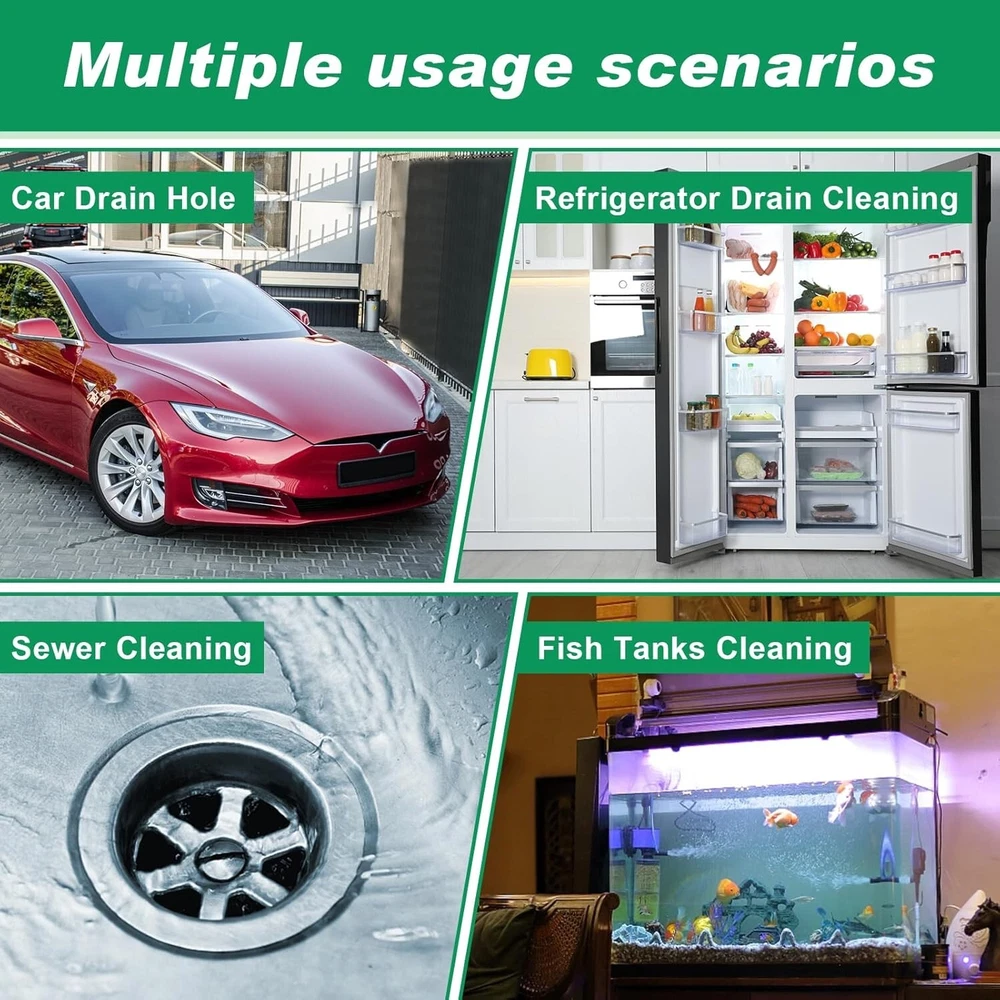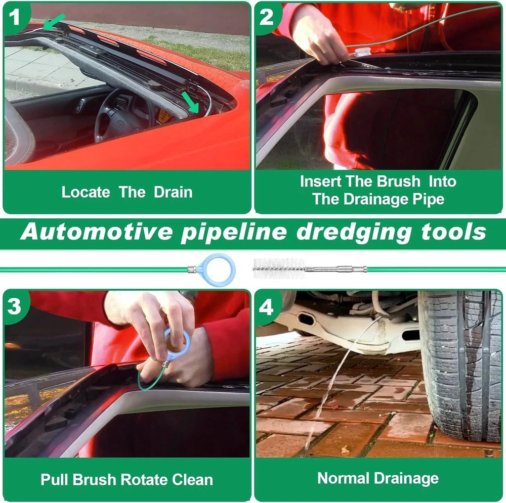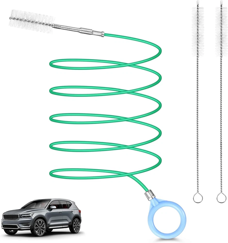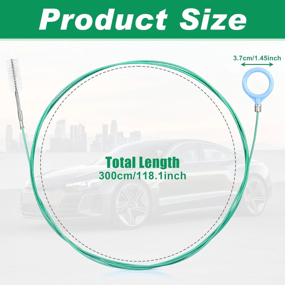 Auto Sunroof Drain Cleaning Tool,118Inch Long Pipe Cleaner for Car,Flexible Tube Cleaning Brush with 2Pcs 7.9inch Cleaning Brush Skinny Pipe Drain Dredge Cleaning Tool for Car Sunroof Wiper Drain Hole Description: Long Pipe Cleaner for Car:The total length of the Long Pipe Cleaner is 118 "(300cm),Diameter 10mm.Practical design can be used to clean the narrow pipes that are difficult to reach. It is very flexible and can be bent.The package comes with 2 x 20cm cleaning brushes for your convenience. Dredge Tool:The pipeline cleaning brush on the other end is made of stainless steel and durable nylon rotating bristles.Soft and high toughness,it gently brushes away deposits without damaging or scratching the soft rubber skylight hose,can be reused for a long term. Tail Pull Ring Design:Circular ring design prevents disengagement and makes stretching and cleaning more convenient. Widely Applicable:The skylight drainage cleaning tool can be used to clean the car sunroofs drains, door drain holes, gas tank drain holes, refrigerator drainage pipe, fish tank, filter system, decorative parts, glass hose/pipe and water pump accessories, etc. 24-Hour Service:Dead branches and leaves are easy to clog the drain, long-term uncleaned will lead to sunroof leakage.Our upgraded drain brush fixes leaks and removes odors caused by clogs.If you have any questions, or encounter any problems, please contact us! Draupnir will answer your questions within 24 hours and give you the best solution!