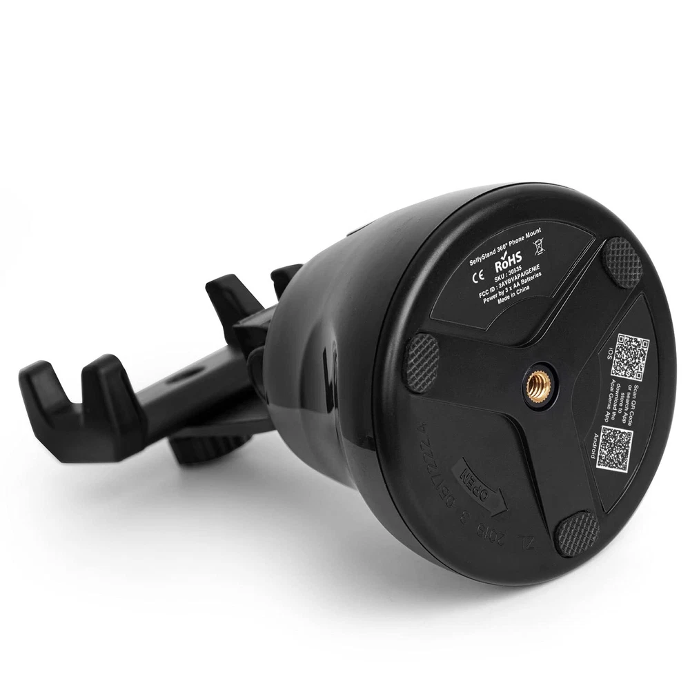 SHELFYSTAND 360 PHONE TRACKER TAKES YOUR PHOTOS AND VIDEOS TO THE NEXT LEVEL - Capture the perfect photo or live recording with the Shelfy Stand 360, equipped with a motorized motion sensored phone video tracker, manual tilting, and a Bluetooth shutter that connects to your smartphone. FACIAL TRACKING PHONE HOLDER UPGRADES YOUR CONTENT - Whether you’re going solo or snapping photos with friends, the 360 Stand auto tracking phone mount is the perfect companion to help you capture A plus content. The must-have motion tracking phone holder for TikTok and Instagram. AUTO TRACKING SMART SHOOTING HOLDER FOR EASE-OF-USE PHOTOGRAPHY - Holding your phone while you take videos and photos can be tiresome. This face tracking selfie stick and auto face tracking holder takes the effort out of taking videos and photos as it removes the need to hold your phone and guarantees a smooth, quality recording. PHONE HOLDER WITH SMART TRACKING TECHNOLOGY - This 360 tracking phone holder grips your phone firmly and uses 360 motion tracker phone technology to smoothly take recordings and photos. Never worry about shaky video recordings or blurry photos ever again with the auto tracking phone stand. EASY TO SET UP 360 SELFIE STAND - Simply install the autoface tracking phone holder app on your phone, turn on the auto tracking smart phone holder, and activate Bluetooth! Once the Apai Genie app is launched, follow the steps and choose your desired tracking mode. PORTABLE SMART TRACKING PHONE HOLDER - This 360 face tracking mount is ultra-portable so you can take it with you everywhere you go. Pop the 360 auto tracking phone holder in your purse or bag and make unbeatable content on the go! AUTOMATIC TRACKING TRIPOD WITH 360° AUTO-ROTATION - With 360° auto-rotation, the selfie stand lets you effortlessly achieve your desired angle for cool photos and videos. The motion tracking tripod tracks you so you're always at center focus. 3-SECOND COUNTDOWN TRACKING MOUNT - The portable phone mount face tracking stand's rotation auto face/body track mode has a 3-second countdown before it automatically snaps a photo, giving you plenty of time to strike the perfect pose. Perfect for taking multiple photos in a single sitting. 360 FACE TRACKING PHONE HOLDER GRIPS YOUR PHONE SECURELY - Featuring an auto-tension phone grip, this smart face tracking phone holder keeps your phone secure, no matter how big or small it is. Auto tracking tripod holds devices up to 117mm (4.5 inches) wide. TRACKING CELL PHONE HOLDER COMPATIBLE WITH TRIPOD - The motion tracker phone holder comes with a built-in camera tripod mount (standard 1/4” thread) that allows you to mount it to a tripod to extend height for a more professional touch.