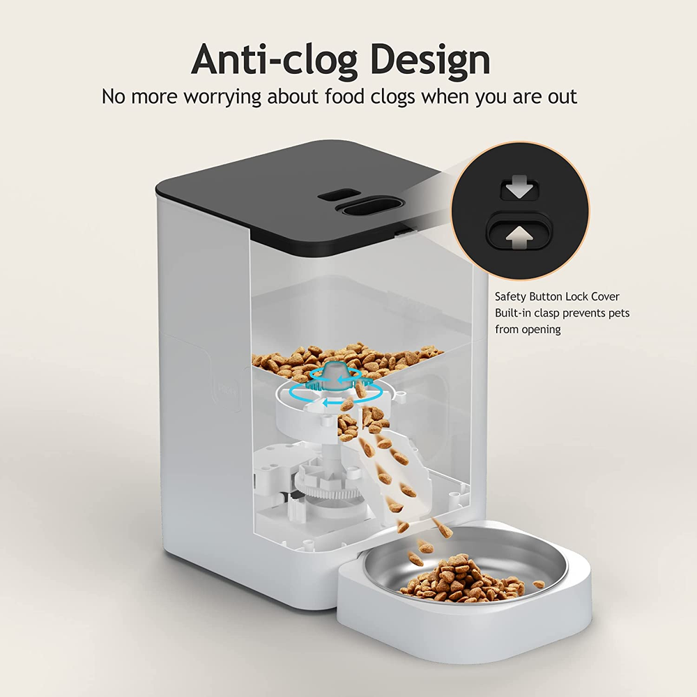 Easy Programmable Feeding Times: Reliably feed your beloved pet at your convenience any time during the day or night; Set between 1-4 meals with 0-40 portion choices to automatically dispense food to give a personal customized diet for your pet Wired or Battery Power: Choose between a fixed wired connection with the 5V adapter USB power cable or a portable 3 D-cell battery-powered feeding station; Flexible options prevent your pet from going hungry during power outages Voice Record Meal Call: Let your cat hear your voice when it’s mealtime to create a strong bond and set good eating habits; Record up to 10 seconds of audio for your furry friend User Friendly Operation: Intuitive LCD screen makes setup and programming a breeze; Removable cleanable parts foster a healthy environment for your pet’s food High-Capacity Food Storage: The 4L/16.9 Cup (1 Cup = 48 Tsp) food storage will keep most pets comfortably fed for several days; Easily keep your cat or dog fed during long weekends and short business trips; Get the peace of mind of a full and happy pet Product description Voluas Automatic Cat Feeders Simplified Pet Care, Always Within Reach The video showcases the product in use. The video guides you through product setup. The video compares multiple products. The video shows the product being unpacked. VOLUAS Automatic Cat Feeders Merchant Video Replaceable Desiccant Bag Keep your pet’s food fresh and dry with these desiccant packets; They effectively prevent moisture, ensuring your pet always enjoys fresh food. Stainless Steel Cat Water Fountain Keep your pet fed and hydrated with a stainless steel fountain—fresh, flowing water even when you're away. No more worries! 6L Automatic Feeder for 2 Cats This Automatic Cat Food Dispenser for 2 Cats is a must-have! Feeding both cats simultaneously, it averts fights. 5L Automatic Feeder for Two Cats Stainless steel build, sturdy and durable. Transparent window, monitor food easily. Dual-feeding for two cats, no food fights. Ideal for multi-cat homes, style meets convenience.