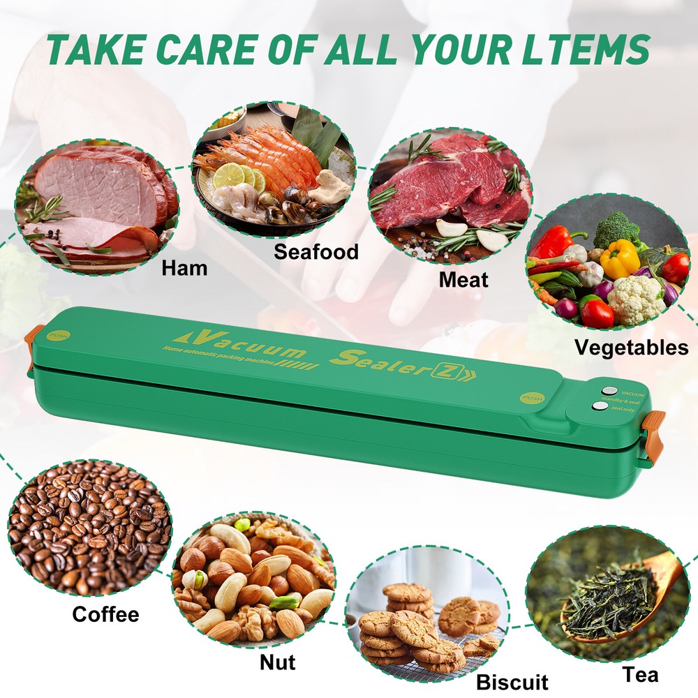 This vacuum sealer is a game-changer for food storage! It’s super easy to use—just pop in your food, press a button, and it quickly removes all the air, keeping everything fresh for way longer. The green ABS body feels sturdy, and it handles both dry and moist foods like a pro. Perfect for meal prep, leftovers, or even sous vide. The automatic sealing is fast and reliable, and the compact size fits nicely on my counter. No more wasted food—this thing pays for itself! Highly recommend for anyone who loves fresh, organized meals.