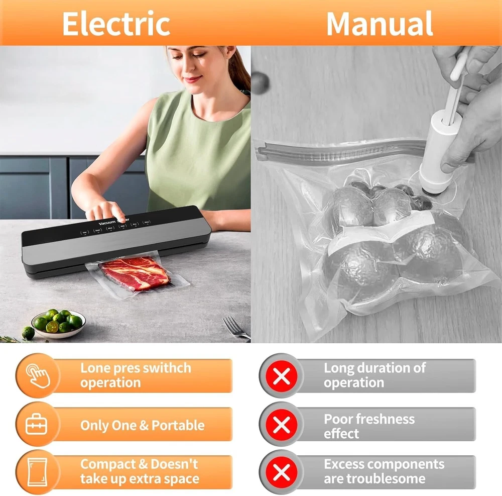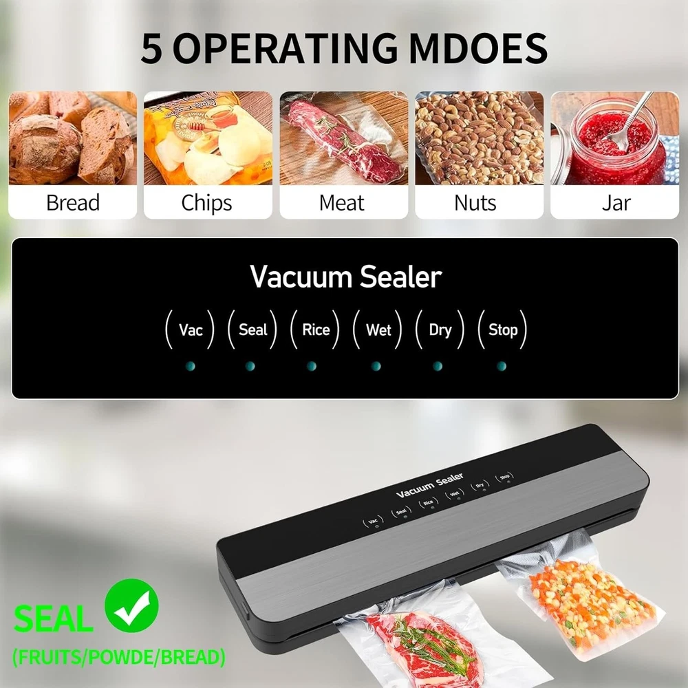【 Professional Vacuum Sealer 】 : Our food vacuum sealer is ergonomically and compact designed. It only takes 8-15 seconds to complete the food vacuum sealing. Keeps food fresh 10X Longer Preservation than ordinary storage methods. It's the perfect solution to keep your food fresh. Reduce your food bill and waste leftovers with our high quality vacuum sealer machine. Once complete sealed and frozen, your favorite foods will keep for up to 1-2 years. 【 6-IN-1 Functions 】 : 6 functions of Mesliese food sealer meet all your needs to preserve various kinds of food. Dry" & moist" modes and "Normal&Soft" Modes for you to choose depend on the food types. What's more, you can also use the vacuum tube for vacuuming canisters, jars, or wine bottles. 【 Keep Food Fresher 10X Longer & Save Money 】 : The vacuum sealer machine is an essential tool in any home kitchen. Using our vacuum sealer machine will not only keep your food fresh, keep your food taste and nutrients intact, reduce food waste and save your money. You will love this way of cooking. 【 Compatibility and Safety 】 : Our vacuum sealer machine fit 11.8 inch /30 cm wide vacuum sealer bags. It is also compatible with any brand of sealer bags. The bottom tank is separated design, easy to install and remove, easy to clean the vacuum sealer safely. This vacuum sealer meets applicable product safety testing standards and is durable, ensuring the safety of you and your family is our top priority. 【 Easy to operate 】 : Fully automatic simple electric plug in design with the control center placed on the top panel and soft touch digital buttons along with led indicator lights A smart device at your family’s service. If you have any question about LayYun Vacuum Sealer Machine, please contact us, we will provide you with a satisfactory solution.