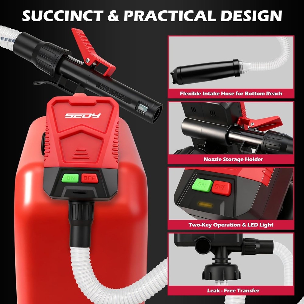 Free eBay listing template designed by dewiso.com Automatic Fuel Transfer Pump with Auto-Stop Sensor(3.2 GPM), Battery Operated Gas Can Pump with 3 Can Adapters, Extra Long Hose, Portable Fuel Pump for Oil, Diesel, Gasoline (Batteries Not Included) FREE AND FAST SHIPPING! About this item AUTO-STOP SENSOR – Built-in auto stop sensor with overfill protection prevents leaks and spills, ensuring safe, clean, and efficient liquid transfer for gasoline, diesel, kerosene, petrol, and non-potable water PRACTICAL DESIGN – Engineered with a flexible intake hose for full bottom reach, an integrated nozzle holder, and simple two-key operation with LED indicator, making fuel transfer easier and more reliable FAST FLOW RATE – High-performance electric fuel siphon pump delivers up to 3.2 GPM through a 48" hose. Flow rate may vary depending on fuel temperature, viscosity, and battery condition 3 SECURE ADAPTERS – Includes 3 tight-sealing adapters for oil, diesel, gasoline, kerosene, or water; please measure your fuel can opening diameter and review detailed product dimensions before ordering to ensure proper fit BATTERY OPERATION – Powered by AA batteries for maximum convenience; optimal performance with 4 same-brand AA batteries, and emergency use with 2 AA batteries. Note: Batteries are not included in the package COMPATIBILITY NOTICE - Please measure your gas can’s opening diameter before ordering — ensures proper compatibility and helps prevent loose connections or fuel spills. Product We offer a 30-Day Return Policy on items which you are not completely satisfied with. You have the option for a full-refund or an exchange of the item. No returns are available on items shipped outside of the US . Shipping We offer Free Shipping to the US and ship within 2 business days of payment, usually sooner. We use UPS express shipping. That's why your products are usually delivered within 3 days . Contact We try our very best to make sure every customer is completely satisfied. If there's a problem , message us! We're happy to help. 24/7 live chat available.