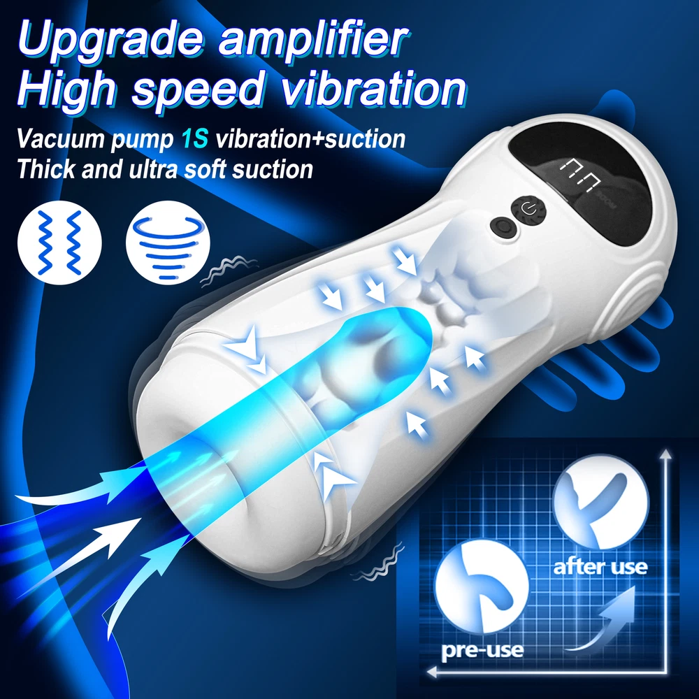 Discreet Package <> <> Features: 【Tightly enclosing suction function】 Unlike traditional models that rely on simple bumping, our advanced design features a powerful vacuum suction pump. Each contraction and expansion provides a tight, enveloping sensation that mimics real interactions. mimics real interactions. 【9 Vibration & 4 Suction】 4 powerful suction & 9 vibrating modes This male suction masturbator is equipped with 4 powerful suction modes and 9 vibration modes to enhance the user experience. 【Premium Material】 Made from soft, stretchy TPE、Silicone. Its 3D channels made of super soft and stretchy silicone absorb you gently and pleasurably. The flexible design for adults fits all sizes, providing friction that intensifies pleasure with every use 【Easy to Clean & USB Rechargeable】 This sex toy for men has a removable sleeve for cleaning. Simply remove the silicone insert, clean and dry it - and it's ready for the next use. 【Low noise & private packaging】 This male stroker features a dual motor design for both suction and vibration, designed for quiet operation. Shipped in discreet packaging, your privacy is protected. 【Added APP Control for Enhanced Fun】 Whether you enjoy curated experiences or customizable adventures this male vibrator offers endless excitement and satisfaction Description: Power supply: USB rechargeable Battery capacity: 700mAh Width:8.2cm/3.38IN Length:8.2cm/3.38IN Height:22.6cm/8.89IN Weight: 480g Vibrator material: Silicone+TPE+ABS Operating time: approx. 60 minutes (fully charged) Package contains: 1 x Automatic masturbator 1 x USB charger 1 x User manual Tips 1, This product is only suitable for adult use. 2, please fully charge the product before use. if it is not used for a long time, it needs to be recharged every 3 months. 3, This product does not require high temperature disinfection, it is suitable for indoor storage. Thank you for your visit!