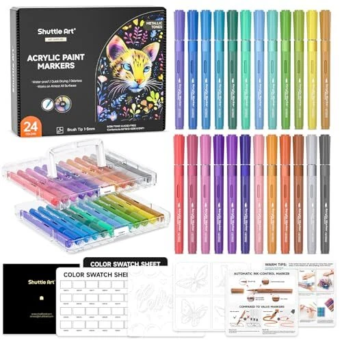 Menu 1. We require immediate payment. 2. We currently accept payment via eBay managed payments only. 3. Once payment is cleared, we will dispatch your shipment within 1-3 business days. Please refer to the "Shipping" tab for more information regarding shipping speed to your destination. Automatic Ink Control Acrylic Paint Markers, 24 Metallic Colors Brush Tip Acrylic Paint Pens for Rock Painting, Ceramic, Wood, Canvas, Glass, Stone, Fabric, Card Making, DIY & Art Supplies Product description 【24 Metallic Colors & Convenient Accessories】: acrylic paint markers set comes with 24 vibrant metallic colors to choose from, the gorgeous metallic ink is waterproof and fade-resistant, perfectly suited to your needs for high standard. The marker set also contains a portable box, 2 color charts and 2 coloring patterns, a hassle-free choice for your creating. 【AUTO INK-CONTROL DESIGN】: Unique automatic ink control makes it easy to balance the pressure inside and outside the pen, makes the ink flow naturally.Gently shaking brings accurate and uniform flow control. Just open the cap and use it, the ink written in this way is more smoother, has a brighter color & stronger coverage, no more stratification. No more tedious start-up steps and no more worries about ink blocking the nib! 【Innovative Tech for Durability】:Compared to the old pressing markers, no more worrying about the ink drying or making a mess of leaking, the innovative ink control design allows no wasting of every ink drop with longer shelf life.In addition to that, we also equip our markers with more ink, all for your longer and smoother writing. 【Flexible Tip for Limitless Creativity】:Brush tips of 1~5mm writing width, allow you to create different strokes by changing the brush pressure, meet your needs both for detail outlining and large area coloring. High-quality brush tip is more friction-resistant than ordinary cotton nibs, no linting, long-lasting and suitable for almost any surface, like stone, mugs, glass, wood, metal, etc. Best choice for Halloween and Christmas decorations, Calligraphy lettering, birthday gifts and more. 【Portable Box Design】: Different from the traditional paper box, we upgraded to a portable 2-layer transparent acrylic box, beautiful and practical, each pen can be easily seen through the transparent shell. Easy get and easy store, excellent choice for both adults and kids, inside and outside activities. 【SERVICE GUARANTEE】: Your satisfaction is our top priority, please rest assured to purchase our products. If you are not satisfied with our products or have any questions, please feel free to contact us at any time. PLEASE MESSAGE US IF YOU HAVE ANY OTHER QUESTIONS, AND MANY THANKS FOR READING ALL OF THIS. Copyright ©#. All Rights Reserved.
