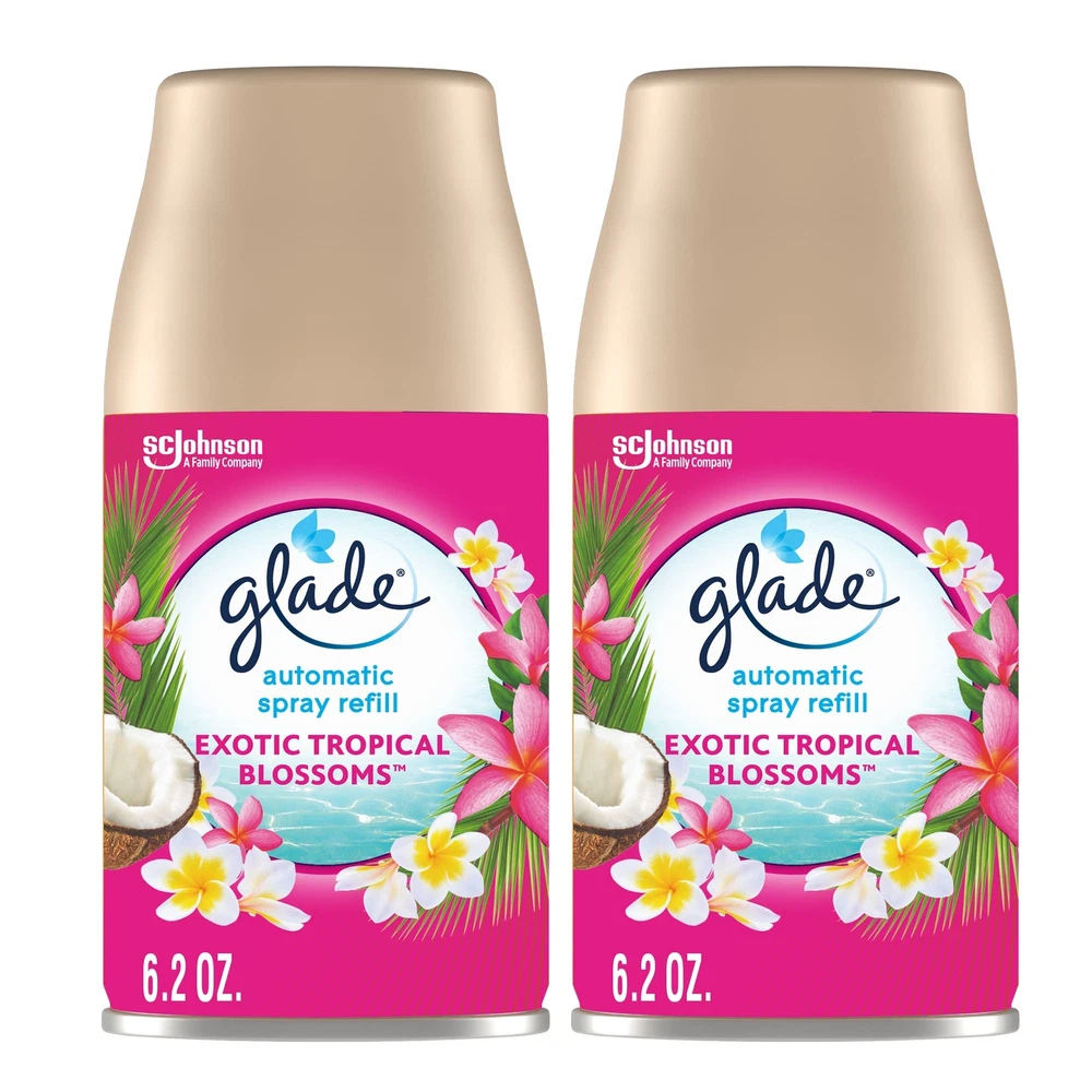 Automatic Spray Refill 2 ct, Exotic Tropical Blossoms, Automatic Spray air freshener, 12.4 oz, 12.4 Ounce Energize your air instantly with Automatic Spray Air Freshener Enjoy a fresh burst every 9, 18 or 36 min for a timed fragrance release Life’s a beach with automatic spray with notes of monoi blossoms, melon and coconut milk This air freshener fragrance is crafted by master perfumers and infused with Essential Oils Boost the fragrance of any room with battery operated air freshener Take an exotic vacation from the comfort of your couch with Exotic Tropical Blossoms Automatic Spray Refill. Life’s a beach with scent diffuser with notes of monoi blossoms, melon and coconut milk. air freshener fragrance is crafted by master perfumers. Switch things up with automatic air freshener dispenser in Exotic Tropical Blossoms scent. Open the unit by squeezing the ribs on the side while pulling sides of holder apart. Insert automatic spray refill and choose the time setting to release fragrance. This automatic air freshener spray gives a fresh burst every 9, 18 or 36 minutes. Surround yourself with room freshener fragrance infused with essential oils and reset the mood mindfully Shipping We offer FREE shipping on all orders! We ship within Three business days of payment, usually sooner. We use a selection of shipping services such as UPS, FedEx, USPS etc. We only ship to the lower 48 states, no APO/FPO addresses or PO Boxes allowed. Local pickups and combined shipping options are not provided at this time. Return You can return a product for up to 30 days from the date you purchased it. Any product you return must be in the same condition you received it and in the original packaging. Please keep the receipt. Payment We accept payment by any of the following methods: PayPal Please pay as soon as possible after winning an auction, as that will allow us to post your item to you sooner! Feedback Customer satisfaction is very important to us. If you have any problem with your order, please contact us and we will do our best to make you satisfied. Contact Us If you have any queries, please contact us via ebay. We usually respond within 24 hours on weekdays. Please visit our eBay store to check out other items for sale! Thank you for shopping at our store.