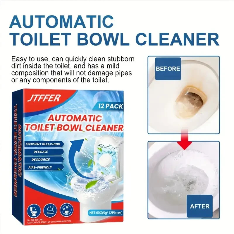 12 Pack (Pink) BLEACHING IS WHAT WE DO: Containing powerful bleaching ingredients, toilet bowl cleaner tablets can efficiently remove stubborn stains such as urine dirt, limescale, and rust stains with every single flush. If you feel the smell of bleach every time, don't worry, it is the powerful cleaning ingredients functioning. Keeping your toilet bowl freshened! SUSTAINED-RELEASE TECHNOLOGY: With the sustained-release technology, each toilet cleaner with bleach can continuously freshen the toilet bowl for at least 15 days, during which it generates a protective film, effectively preventing stubborn stains from adhering. EASY OPERATION: BRUSH THE TOILET BOWL FIRST BEFORE EACH USE! Simply unpack the packet and then drop the bleach toilet bowl cleaner into the water tank and leave it doing the cleaning. Preparation is complete, all you need to do is to flush when necessary. The effortless operation saves you much time and energy. LONG-LASTING USE: Each toilet tablet lasts for at least 15 days, saving you a lot of time and energy from frequent replacement. Fast Shipping!