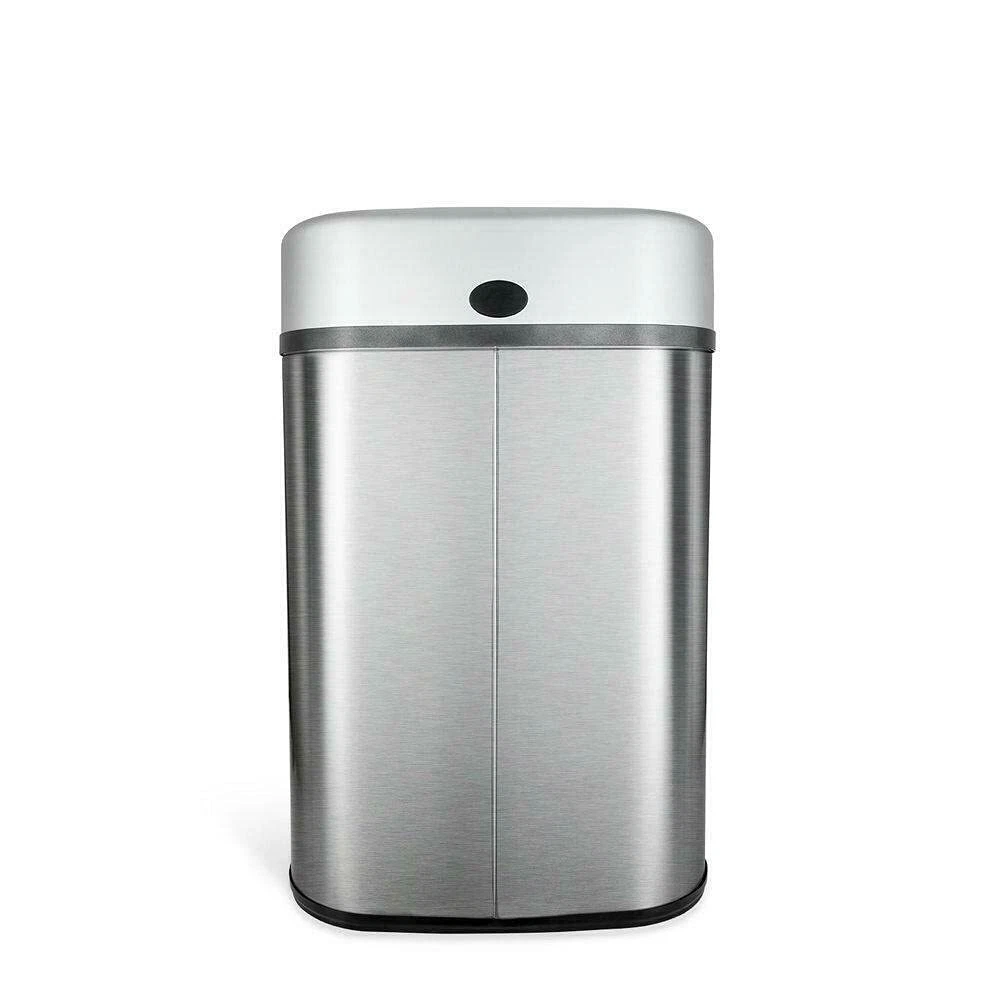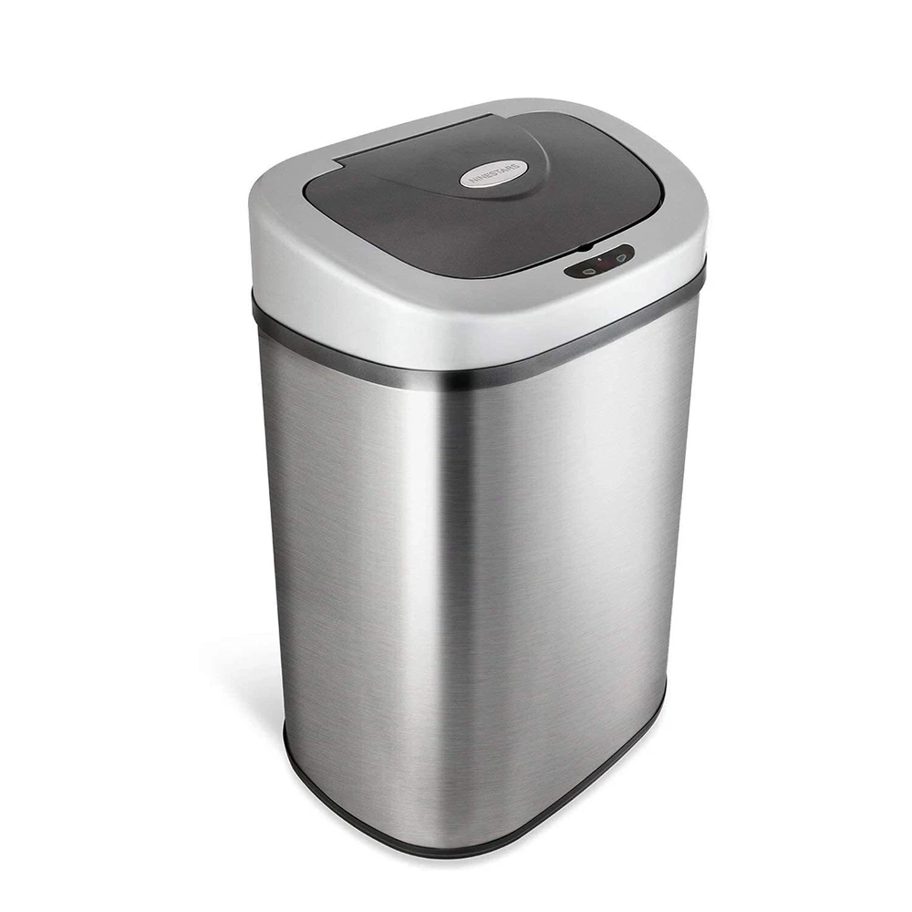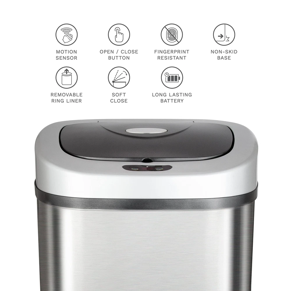 Automatic open and close garbage bin 430-grade stainless steel trash can Fingerprint resistant brushed stainless steel exterior for superior durability, performance and enduring style Included ring liner