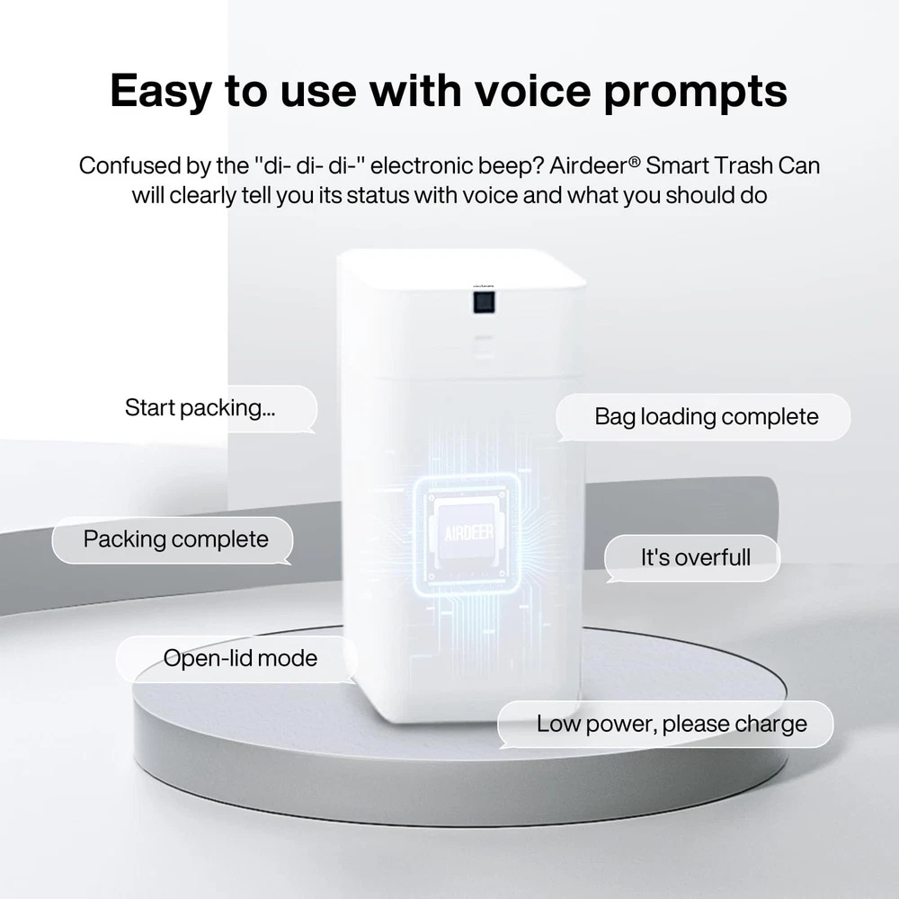 【Self-sealing trash bag】Smart Trash Can features a one-touch self-sealing mechanism that automatically packs the garbage by simply pressing and holding the touch button, so you don't have to touch the trash directly. 【Automatic bag replacement】After removing the packed garbage bag, Trash Can will automatically replaces it with a new one, saving you the hassle of frequent bag changes and greatly saving time and effort. 【Long-lasting refill bag ring】When you purchase the Smart Trash Can for the first time, we will provide a complimentary set of 6 refill bag rings, each containing 20 trash bags, totaling 120 bags. 【Touchless Lid Opening】With a simple wave of your hand or a slight bend of your knee, the lid opens quickly, allowing you to dispose of trash without any physical contact. Say goodbye to touching dirty surfaces, isolating odors, and experience a more hygienic and convenient way of discarding waste. 【User-friendly with voice prompts】Smart Trash Can features voice prompts that make it easy for everyone to operate, including children and the elderly. 【Long battery life】Trash Can's battery charges for 7 hours and provides a battery life of 90-180 days. 【One-Year Warranty Provided】offers a one-year warranty for any defects caused by non-human factors. If you have any questions or concerns, please feel free to contact us at any time. We are here to assist you.