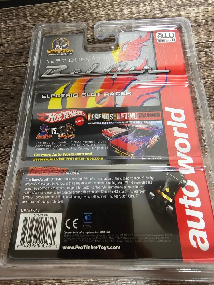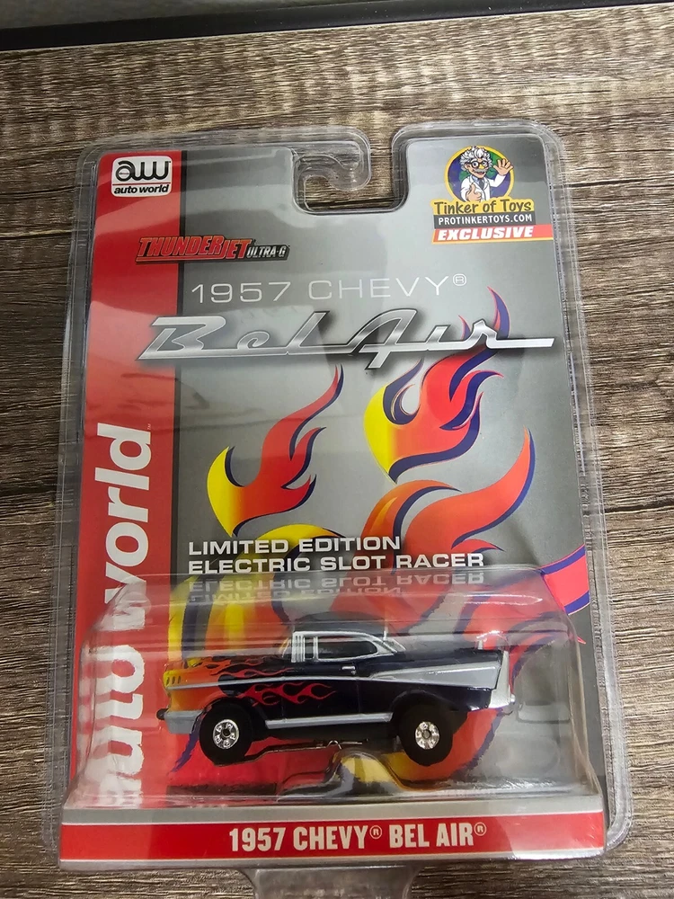 Autoworld HO Slot Car New 1957 Chevy Bel Air Blue Red Flames