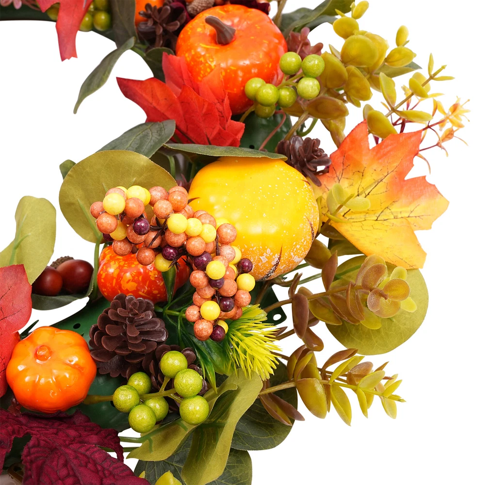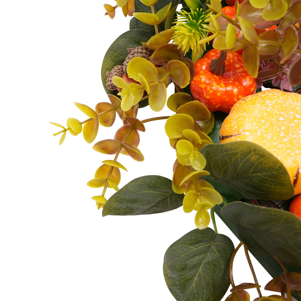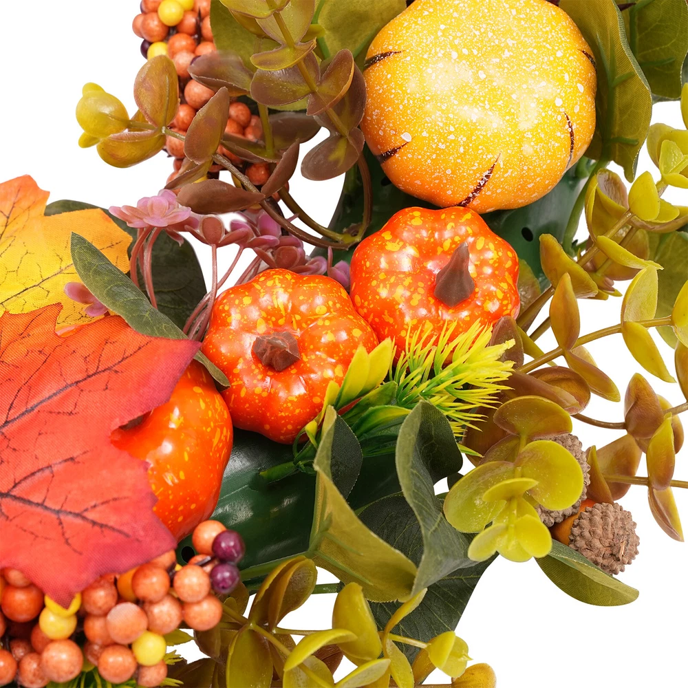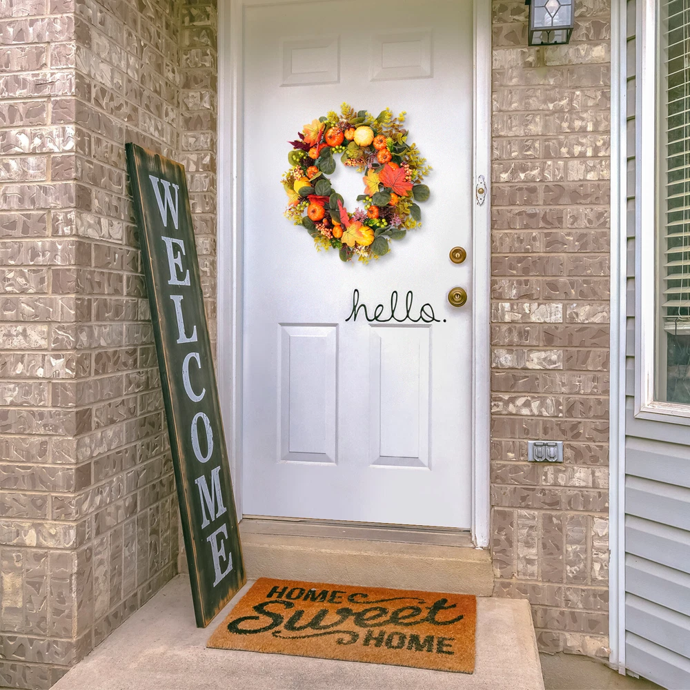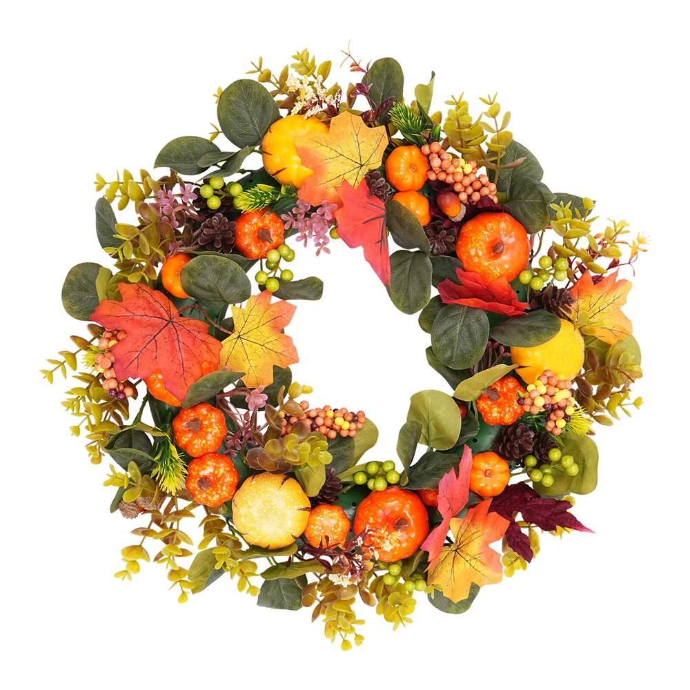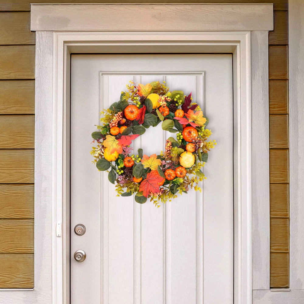 This gorgeous autumn wreath instantly adds cozy fall vibes to any space! The vibrant orange, yellow, and green colors pop beautifully, and the mix of pumpkins, fruits, and leaves looks so realistic. Love that it's handmade with quality materials yet lightweight and easy to hang. Perfect for sprucing up doors, walls, or windows both indoors and out. The countryside-style design brings such warm, festive energy without being over-the-top. Arrived ready to display with no assembly needed - just unwrapped and hung it up! Makes my home feel instantly more seasonal and inviting. Exactly as described, great value for such a pretty decorative piece.
