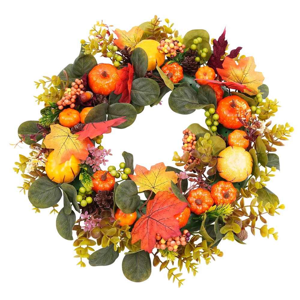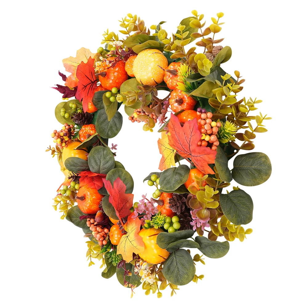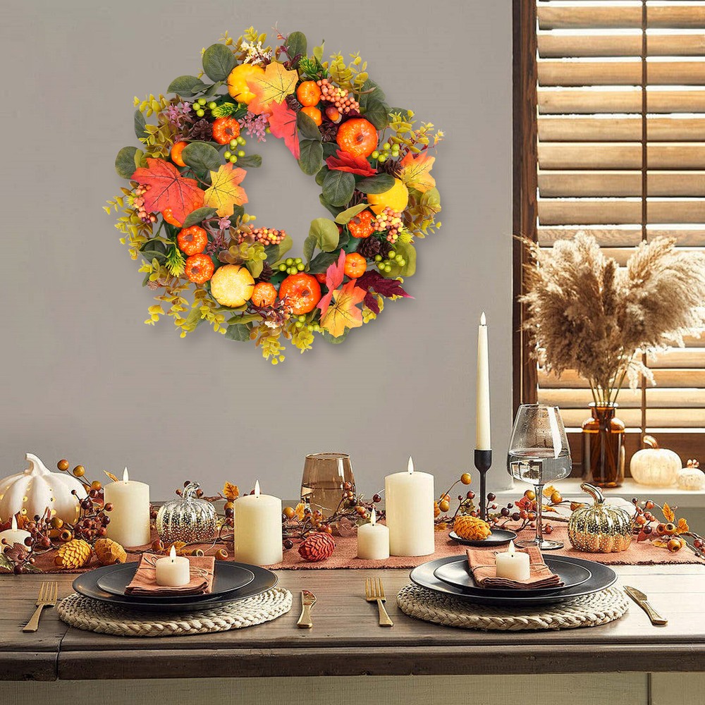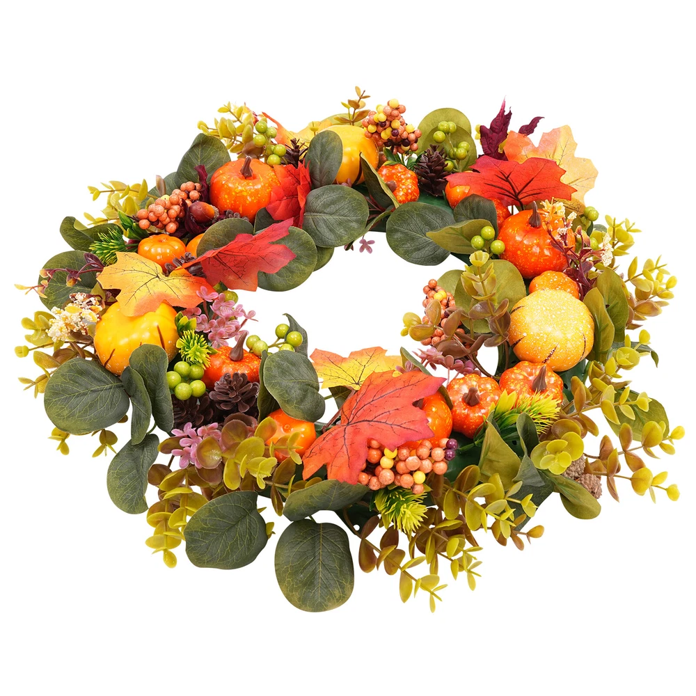 Autumn Pumpkin Wreath Artificial Window Decor for Indoor or Outdoor