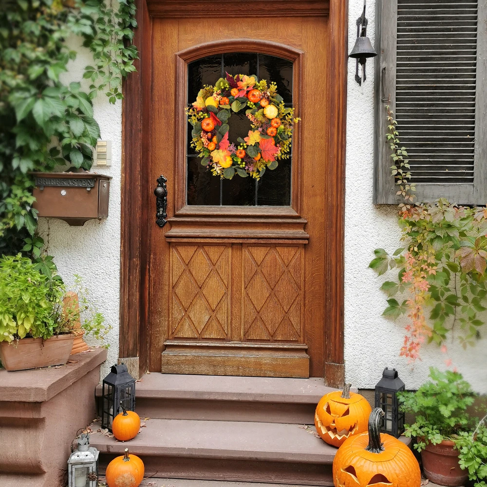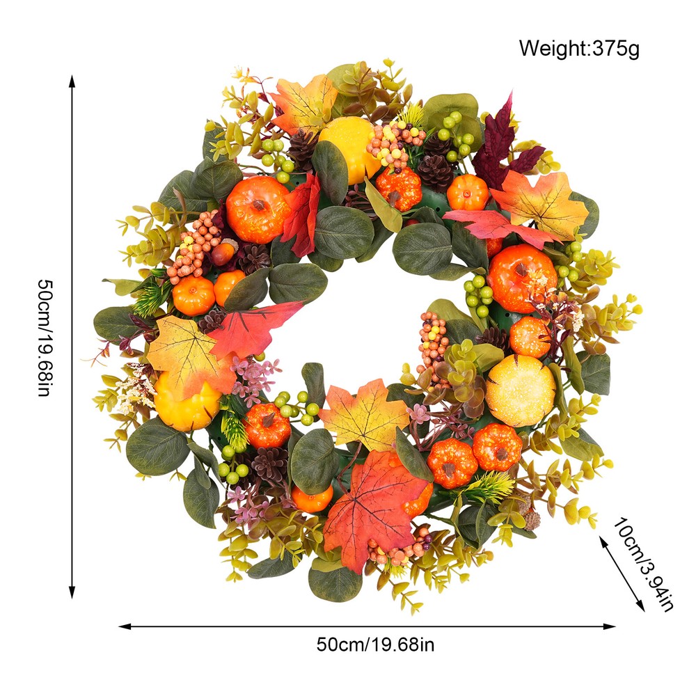 This autumn wreath is absolutely stunning! The lifelike pumpkins, fruits, and vines add such a warm, rustic charm to my front door. The colors are vibrant, and the craftsmanship is impressive—you can tell it's handmade with care. It arrived ready to hang, no assembly needed, and the quality feels durable. Perfect for adding cozy fall vibes to any space!