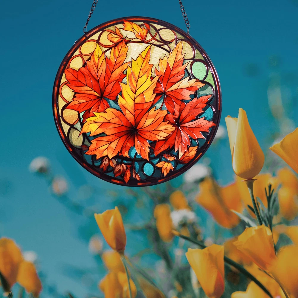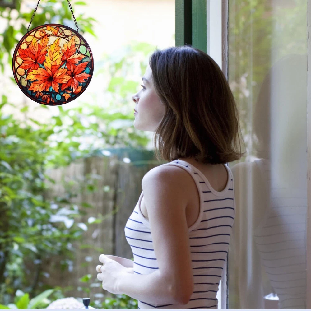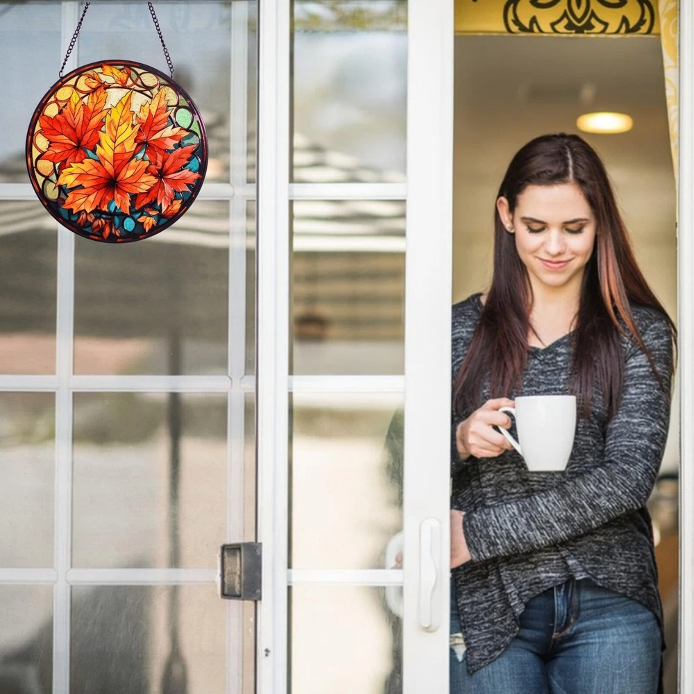 Autumn Stained Glass Window Hanging 8/20CM Maple Leaves Suncatchers for D