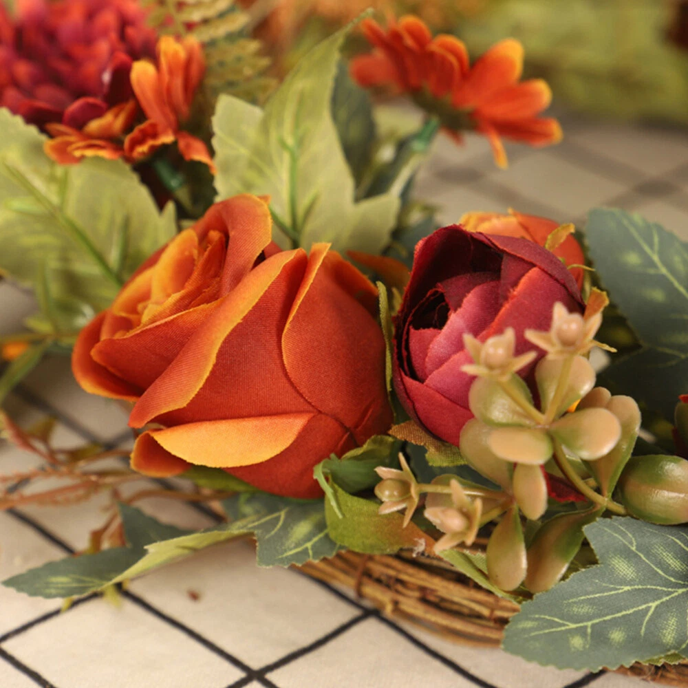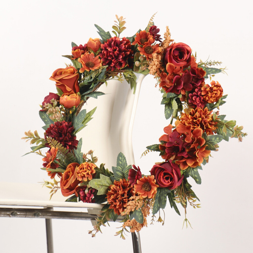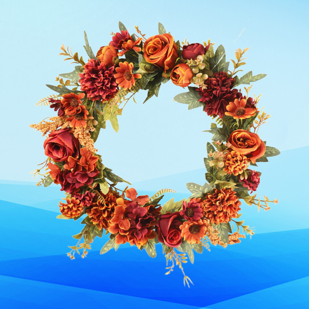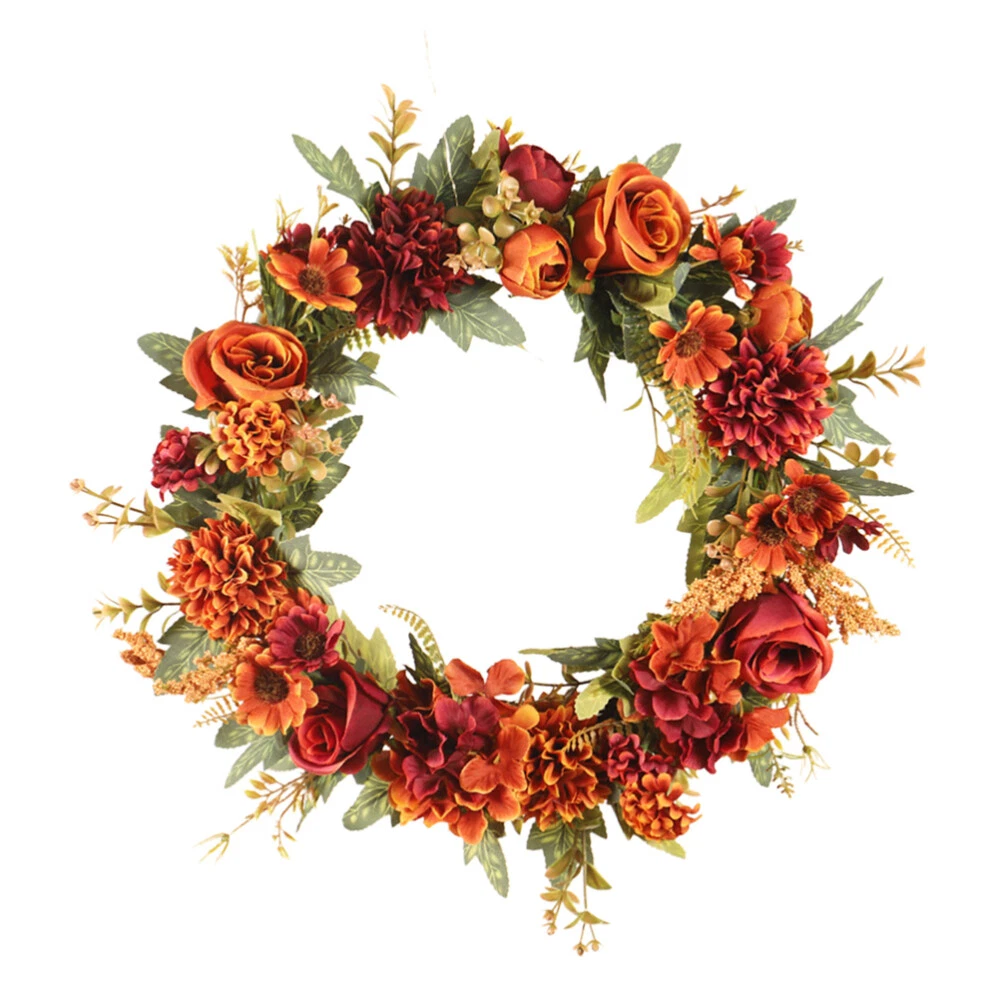 Autumn Thanksgiving Green Leaf Floral Front Door Wreath