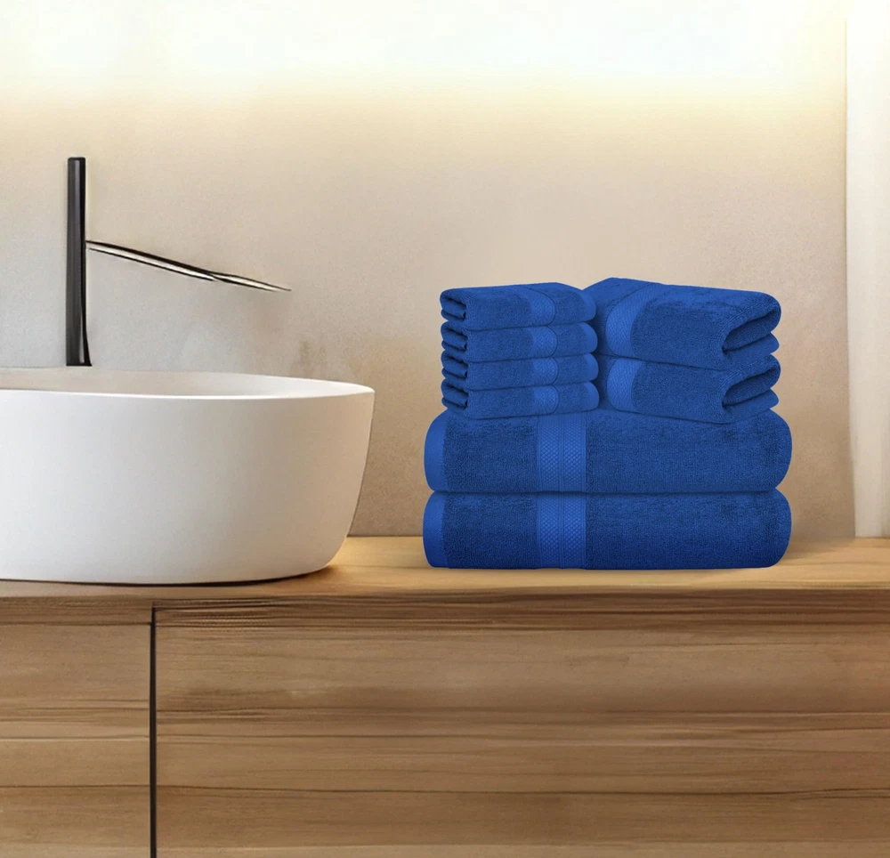 Luxury 8 Piece Towels Set, 2 Bath Towels, 2 Hand Towels and 4 Washcloths, 600 GSM 100% Ring Spun Cotton Highly Absorbent Bathroom Towel Set, Ideal for Hotel, Spa and Gym (Royal Blue) AVALON LUXURY 8 PIECE TOWELS SET: Indulge in the ultimate blend of softness, style, and luxury with our bath towels. Crafted with the finest cotton, our bath towel set offers superior absorbency and durability perfect for everyday use and a touch of elegance. UPGRADE YOUR BATHROOM: This set includes 2 bath towels, 2 hand towels, and 4 washcloths, offering everything you need for a well-equipped bathroom. Designed with care, each piece adds practicality and sophistication, making it a perfect addition to your DURABLE AND PREMIUM MATERIAL: Design to offer ultimate comfort, our royal blue towel for bathroom are ultra-soft and absorbent. Experience a spa-like feel right at home with our luxury bath towels set made of premium-quality fibers that resist discoloration and rough texture. Add a touch of luxury to your bath routine while upgrading your bathroom décor with our bath sets. Care Instructions: Wash the bath towels separately in warm water to avoid discoloration and friction, and preserve softness. Use a mild detergent without added fabric softener to maintain absorbency. Tumble dry on a low heat setting to preserve the luxurious feel and color. ORGANIC COMPOSITION: Crafted with care, ' complete bathroom towel set is free from harmful chemicals, ensuring a safe and gentle touch for your skin. Non-abrasive and soft, this set makes a thoughtful and practical gift for your friends and family. Shipping We offer FREE shipping on all orders! We ship within Three business days of payment, usually sooner. We use a selection of shipping services such as UPS, FedEx, USPS etc. We only ship to the lower 48 states, no APO/FPO addresses or PO Boxes allowed. Local pickups and combined shipping options are not provided at this time. Return You can return a product for up to 30 days from the date you purchased it. Any product you return must be in the same condition you received it and in the original packaging. Please keep the receipt. Payment We accept payment by any of the following methods: PayPal Please pay as soon as possible after winning an auction, as that will allow us to post your item to you sooner! Feedback Customer satisfaction is very important to us. If you have any problem with your order, please contact us and we will do our best to make you satisfied. Contact Us If you have any queries, please contact us via ebay. We usually respond within 24 hours on weekdays. Please visit our eBay store to check out other items for sale! Thank you for shopping at our store.