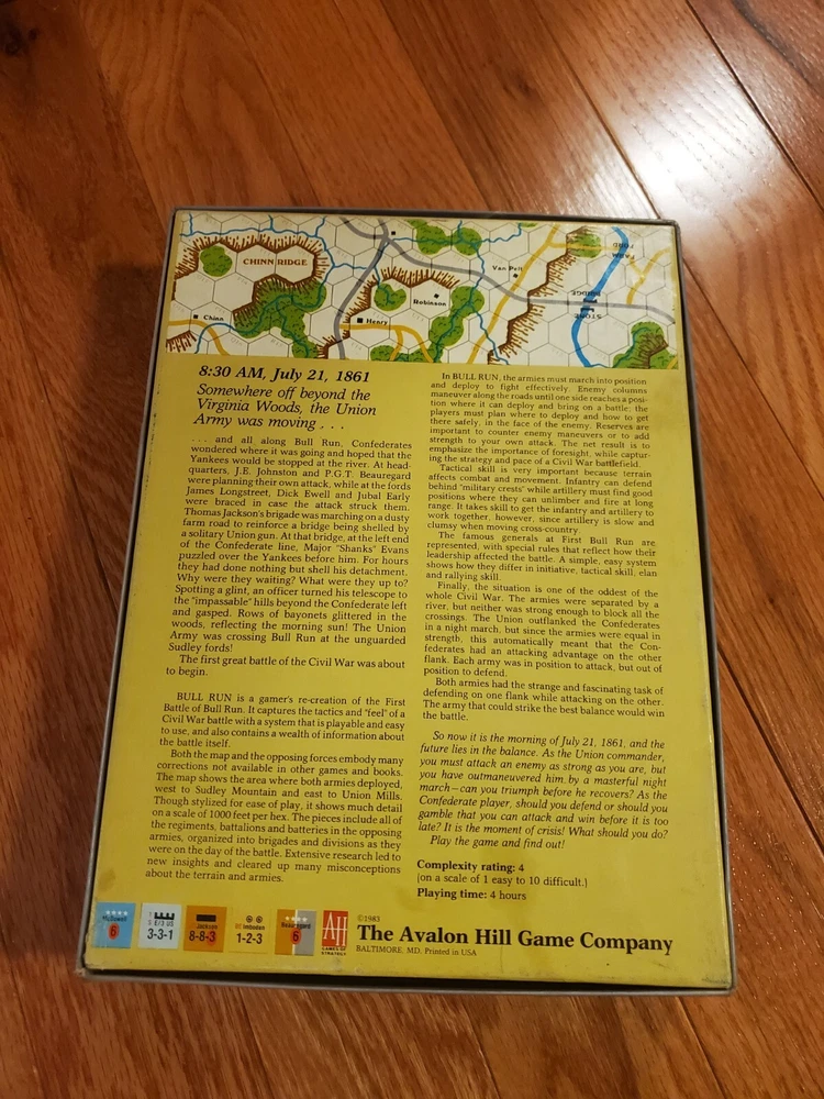 Game Type: Board Game Theme: War Year: 1983 Brand: Avalon Hill Country/Region of Manufacture: United States Game Title: Bull Run