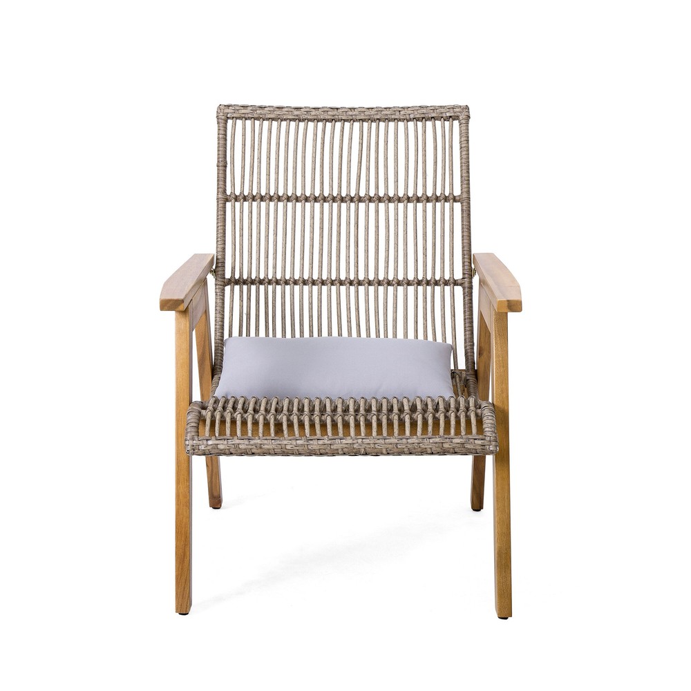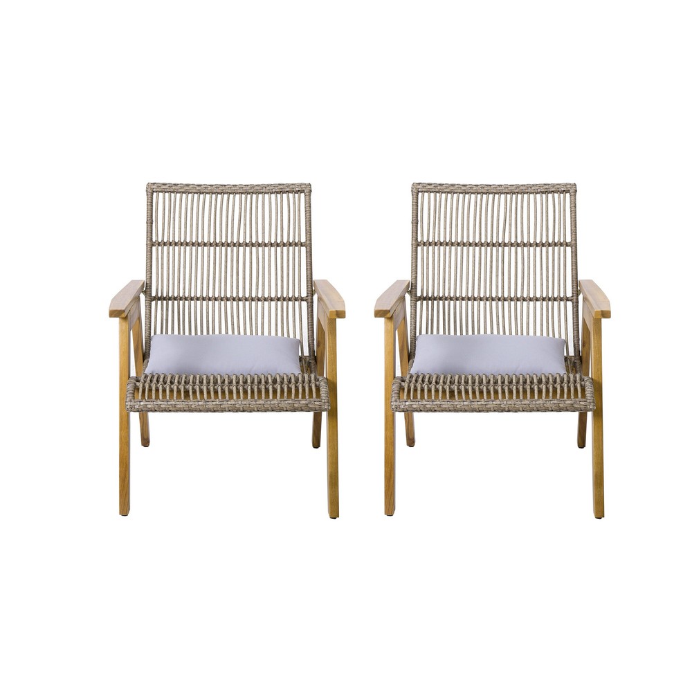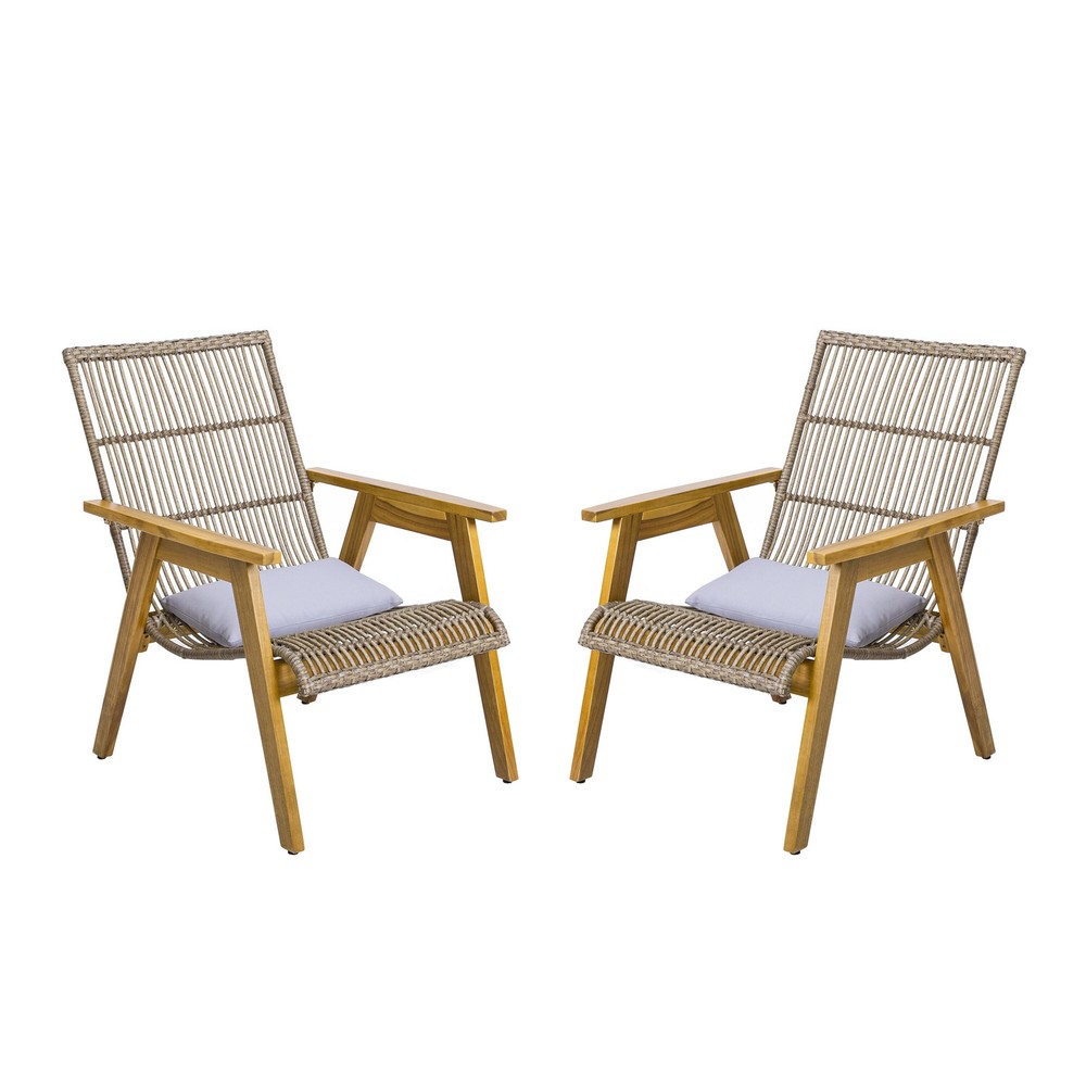 Experience outdoor luxury with the Avani Outdoor Club Chair, where comfort and style effortlessly blend. Perfect for soaking up the sun or enjoying a starlit evening, this set brings sophisticated comfort and style to your outdoor space, making it an essential addition to your backyard haven. Whether you're relaxing solo or enjoying a chat with friends, the Avani chair adds a touch of elegance to any setting, making it an essential addition to your outdoor haven. Embrace serene moments and sophisticated comfort with the Avani Accent Chairyour ideal partner for leisure and relaxation.MODERN STYLE: Crafted with clean, precise lines and a blend of acacia wood, iron, round wicker, and flat wicker, this outdoor club chair epitomizes a chic, minimalist style while prioritizing both aesthetics Free Shipping Over $49.99* Details Avani Outdoor Acacia Wood and Wicker Club Chair with Arms (Set of 2) by Product Description: Experience outdoor luxury with the Avani Outdoor Club Chair, where comfort and style effortlessly blend. Perfect for soaking up the sun or enjoying a starlit evening, this set brings sophisticated comfort and style to your outdoor space, making it an essential addition to your backyard haven. Whether you're relaxing solo or enjoying a chat with friends, the Avani chair adds a touch of elegance to any setting, making it an essential addition to your outdoor haven. Embrace serene moments and sophisticated comfort with the Avani Accent Chairyour ideal partner for leisure and relaxation. MODERN STYLECrafted with clean, precise lines and a blend of acacia wood, iron, round wicker, and flat wicker, this outdoor club chair epitomizes a chic, minimalist style while prioritizing both aesthetics and functionality. ACACIA WOODCrafted from acacia wood, this chair offers a sleek look and durability. Resistant to outdoor elements, it maintains its original hue over time. With its sturdy frame, acacia wood ensures longevity, perfect for outdoor settings. WICKER SEATINGFeaturing intricately woven wicker seating seamlessly blending into the backrest, this club chair set exudes a natural style ideal for outdoor settings. ASSEMBLY REQUIREDSome assembly is required for this chair set. All of the instructions and tools needed for assembly are included. This comes as a set of two. DIMENSIONSChoose an accessory that is the perfect size for you and your furniture. Each Club chair is 26.5" W x 31" D x 35.25" H . You will love how much your space can transform with the simple addition of these charming set. This comes as a set of two. IncludesTwo (2) Club Chairs Frame ColorTeak Finish Wood,Mix Brown Wicker Comes with a cushion Material:Acacia Wood,PE Rattan + Round Wicker Assembly Required Dimensions31" D x 26.5" W x 32.25" H Seat Dimensions20" D x 22" W x 15.5" H Arm Height23" H Care Instructionswipe with a dry cloth as needed.