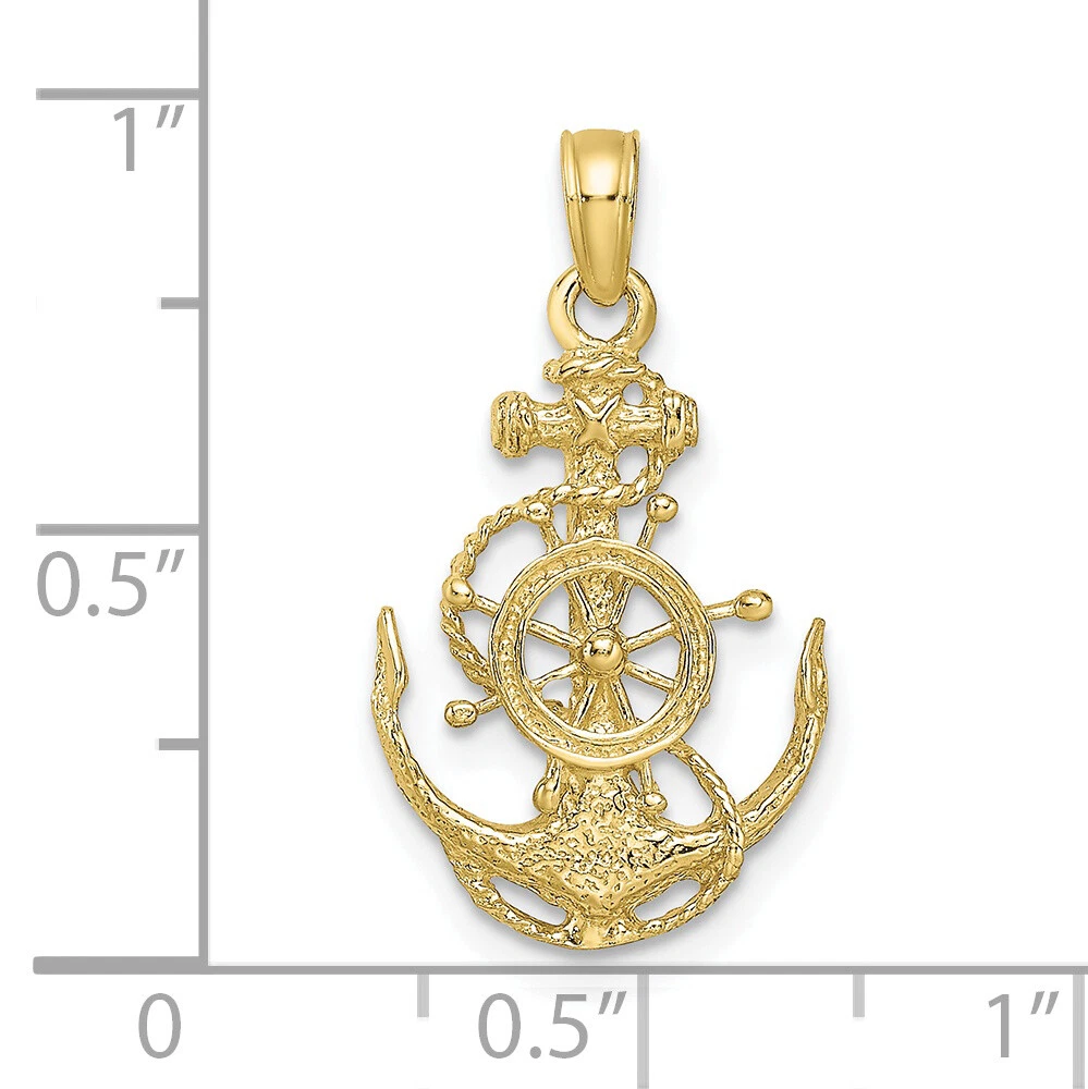 Avariah Solid 10k Yellow Gold Small Anchor w/Wheel Pendant - 24mm