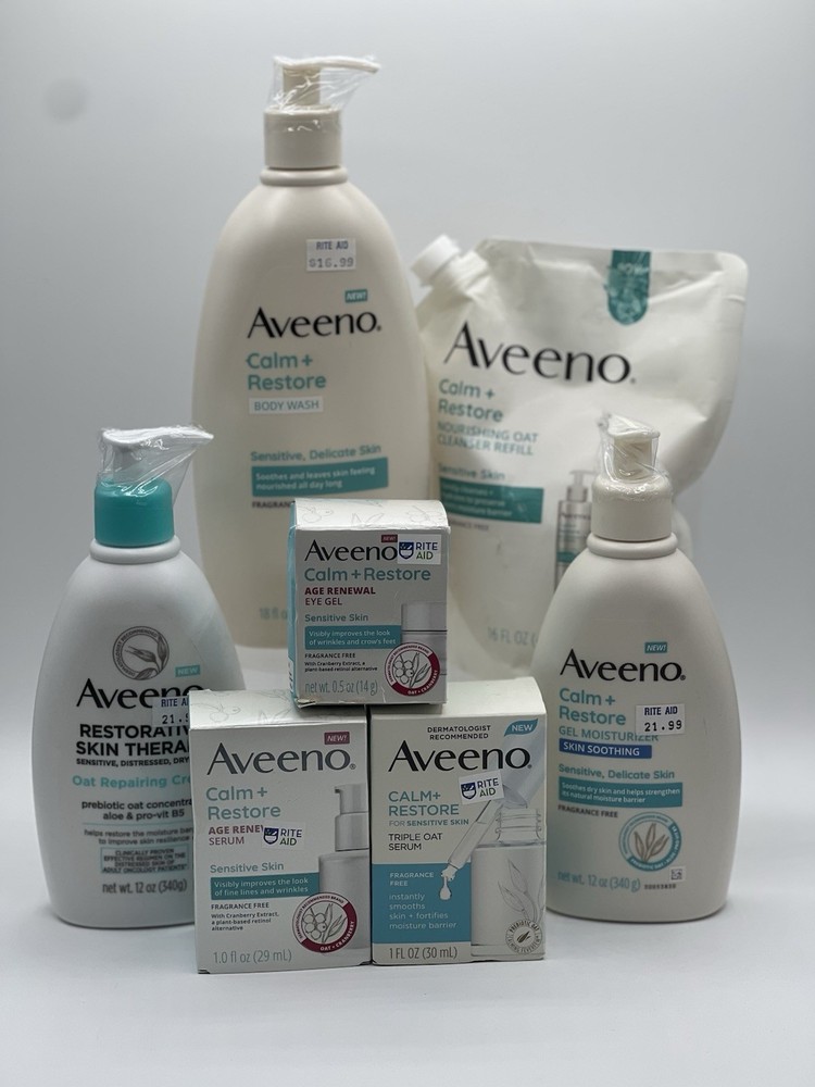 Aveeno Calm + Restore Daily Body Wash, Lotion, Eye Gel & More/Over A $100 Value.