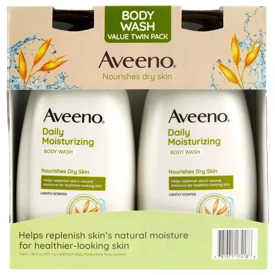 Aveeno Daily Moisturizing Body Wash, 33 fl. oz., 2 pk. NEW Description : Aveeno Daily Moisturizing Body Wash uses a unique blend of emollients and natural oils along with colloidal oatmeal to clean and replenish skin. Aveeno Moisturizing Body Wash is gentle enough for sensitive skin and can be used every day. This body wash is dermatologist recommended and leaves you with healthy, smoother looking skin. Features : Soap-free formula Dye-free and hypoallergenic Dermatologist recommended 2-pack, 33 fl. oz. bottles We try our very best to make sure every customer is completely satisfied. If there's a problem, message us! We're happy to help Visit Our store to get great Discounts ,looking forward for your positive response !