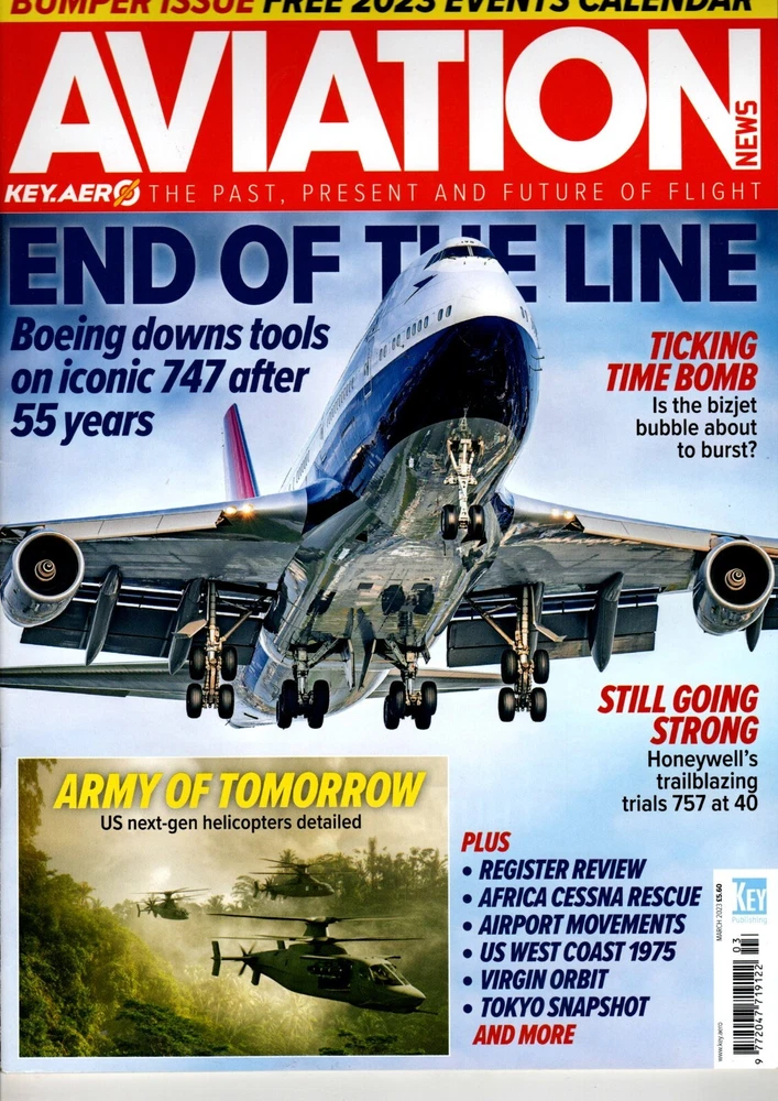 This listing is for single issues of Aviation News from 2023 onwards Each issue is in good condition Please select the required Month from the dropdown list Some of the contents are given and supplement information below Issues from 2002-2002 are in a different listing For poster availability see entries below for yes or no · January 2023 BelugaST,Alouette 3 · February 2023 Condor,Skyvan,ITA Airways · March 2023 Boeing 747 · April 2023 Qantas,P-8A Poseidon,F-16V · May 2023 – Includes Guide · June 2023 Flybe,United Airlines · July 2023 Airbus A350 · August 2023 Pilatus PC-21,Romanian Mig-21 · September 2023 Cessna 172,355TM CL-215 · October 2023 Airbus A220 – Includes UK & Ireland Airlines Guide · November 2023 Finnair · December 2023 India Rafale,King Air,Air France KLM,F1 BAe146 · · February 2024 · March 2024 Netherlands 336 Sqn,Boeing 737 MAX · April 2024 A400M Part 1,Air UK · May 2024 A400M Part 2 · June 2024 AMX,ARJ21,Harbour Air · July 2024 Falklands Islander,Piper PA46 · August 2024 UK Car Ferry Airlines