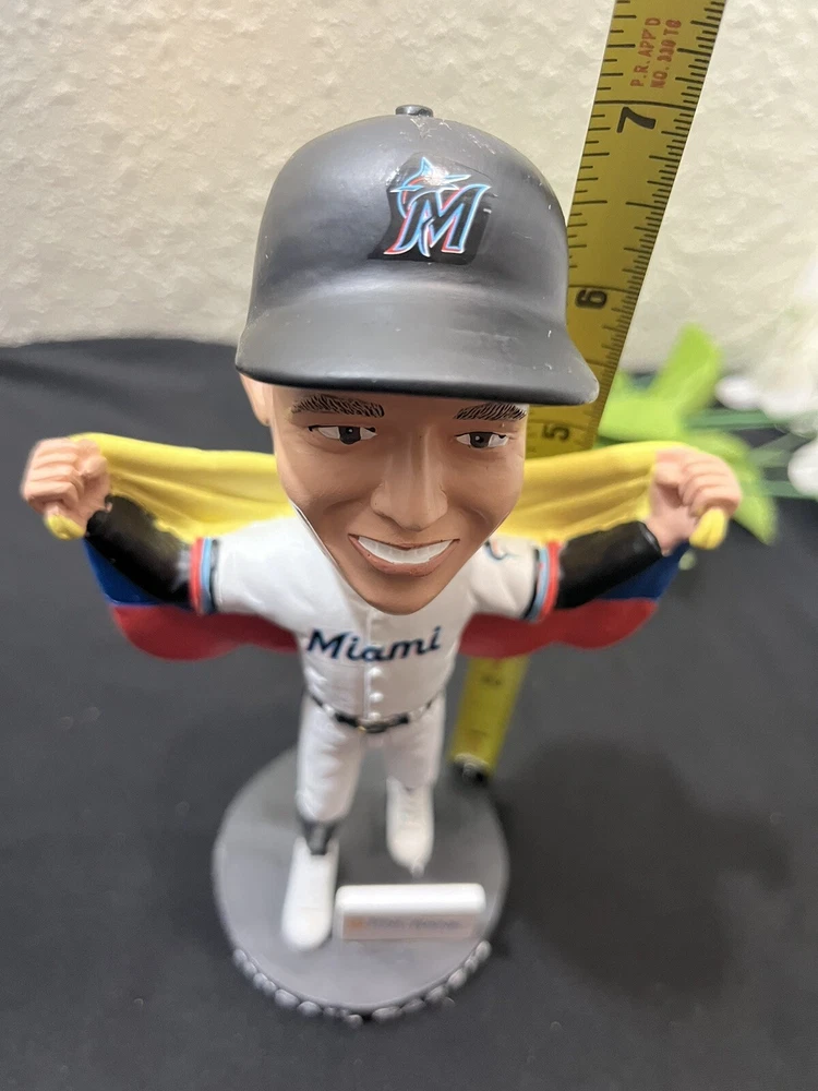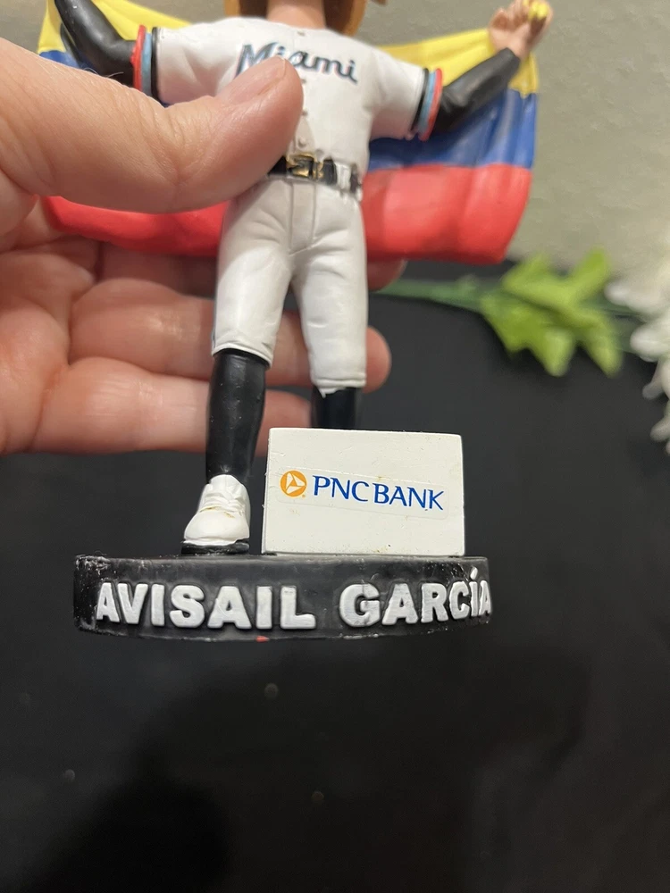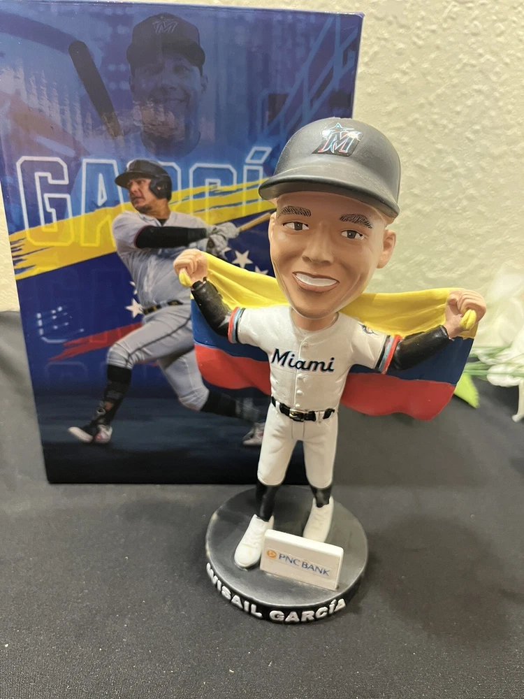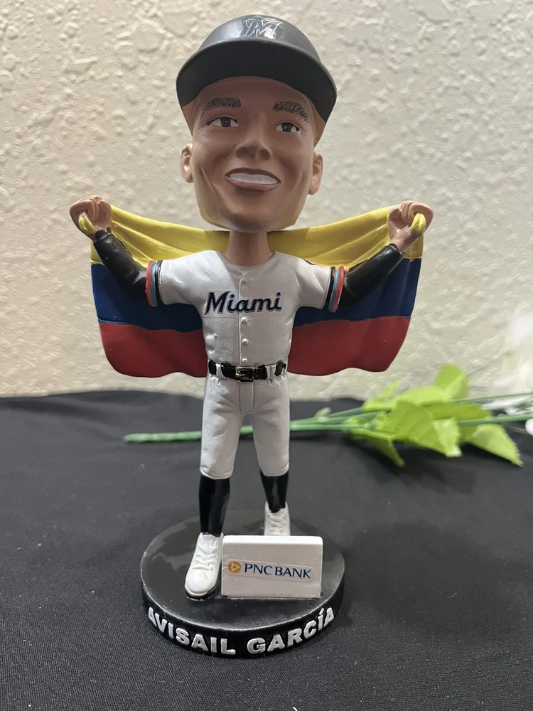 This exclusive 7" Avisail Garcia Miami Marlins Bobblehead is a must-have for any baseball fan. Representing the Major League (MLB), this product is a perfect addition to your collection. Made in Venezuela, this Bobblehead is a unique piece that showcases the player's talent and passion for the sport. With its detailed design and high-quality materials, this Bobblehead is a great investment for any collector. It's perfect for displaying in your home or office, and is sure to be a conversation starter. Don't miss out on this opportunity to own a piece of baseball history. Pre-owned collectible in very good condition and original box and packaging