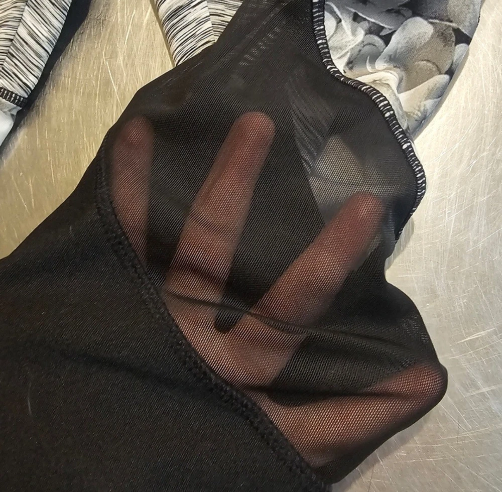 Perfect pre-owned condition, size medium, inner drawstring, small inner pocket, mesh panels on the calf portion, floral design