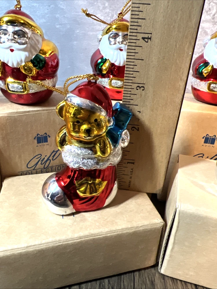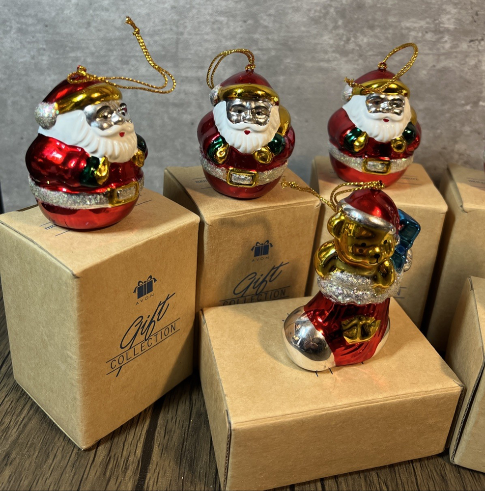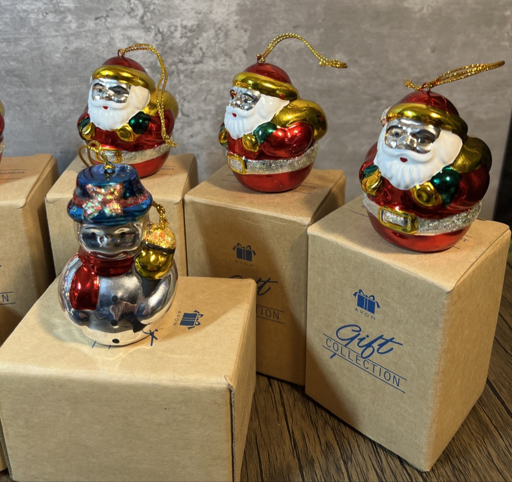 The Avon 1998 Ceramic Santa Claus Ornament Gift Collection features 6 Santa Claus ornaments, 1 stocking, and 1 snowman, all in small vintage ceramic pieces. Each ornament is decorated with a multicolor design and can be hung for decorative display. Perfect for Christmas, this retro collection from Avon offers a nostalgic addition to any holiday decor. I will pack with care and get them to you ASAP Thanks for looking !