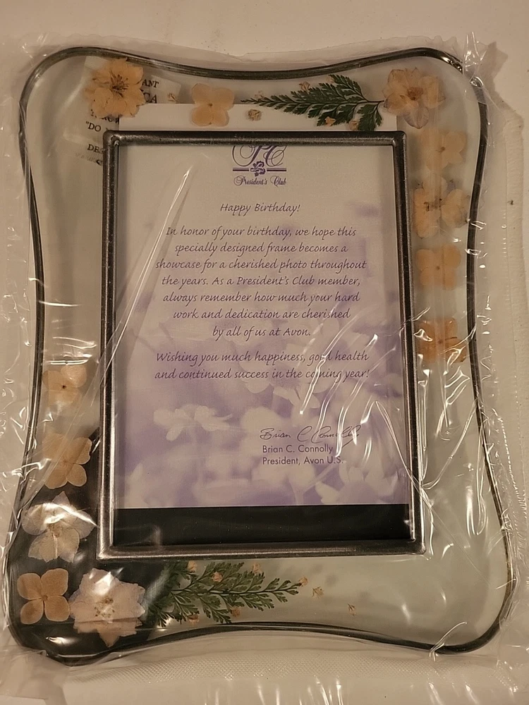 Avon 2002 Presidents Club Birthday Gift Pressed Flowers Photo Picture Frame 5x7
