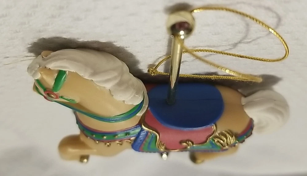 Add a touch of exotic elegance to your Christmas decor with this beautiful Avon Gift Collection Christmas Ornament Carousel. This small, multicolored plastic ornament features a horse from a carousel, perfect for any animal-themed Christmas tree. The ornament is part of the Avon brand and comes with a hanging feature for easy placement. This Christmas ornament is perfect for adults and is sure to add a unique touch to your holiday decor. The geometric pattern and intricate design of the horse make it a true standout. Celebrate the holiday season in style with this exquisite Avon Gift Collection Christmas Ornament Carousel. Nice vintage condition