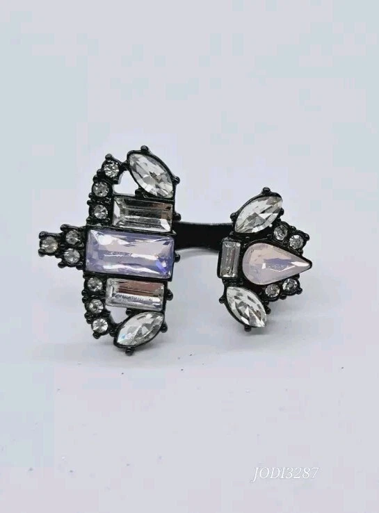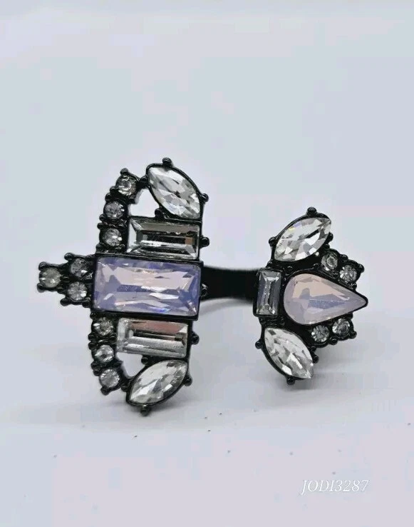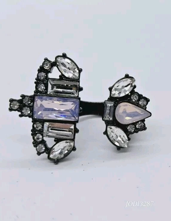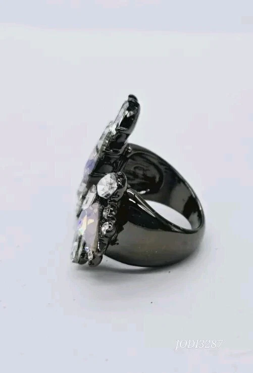 Shape:Open front shankType:RingLot:NoVintage:YesCustomized:NoSizable:Nogtin13:Does not applyMain Stone Shape:BaroqueGender:FemaleUPC:Does not applyPersonalize:NoBrand:AvonMain Stone:Faux Opal Crystal gemsColor:Multi-ColorStyle:StatementMetal:Titanium PlatedSigned:NoWholesale:NoAntique:NoHandmade:NoRing Size:7.5
