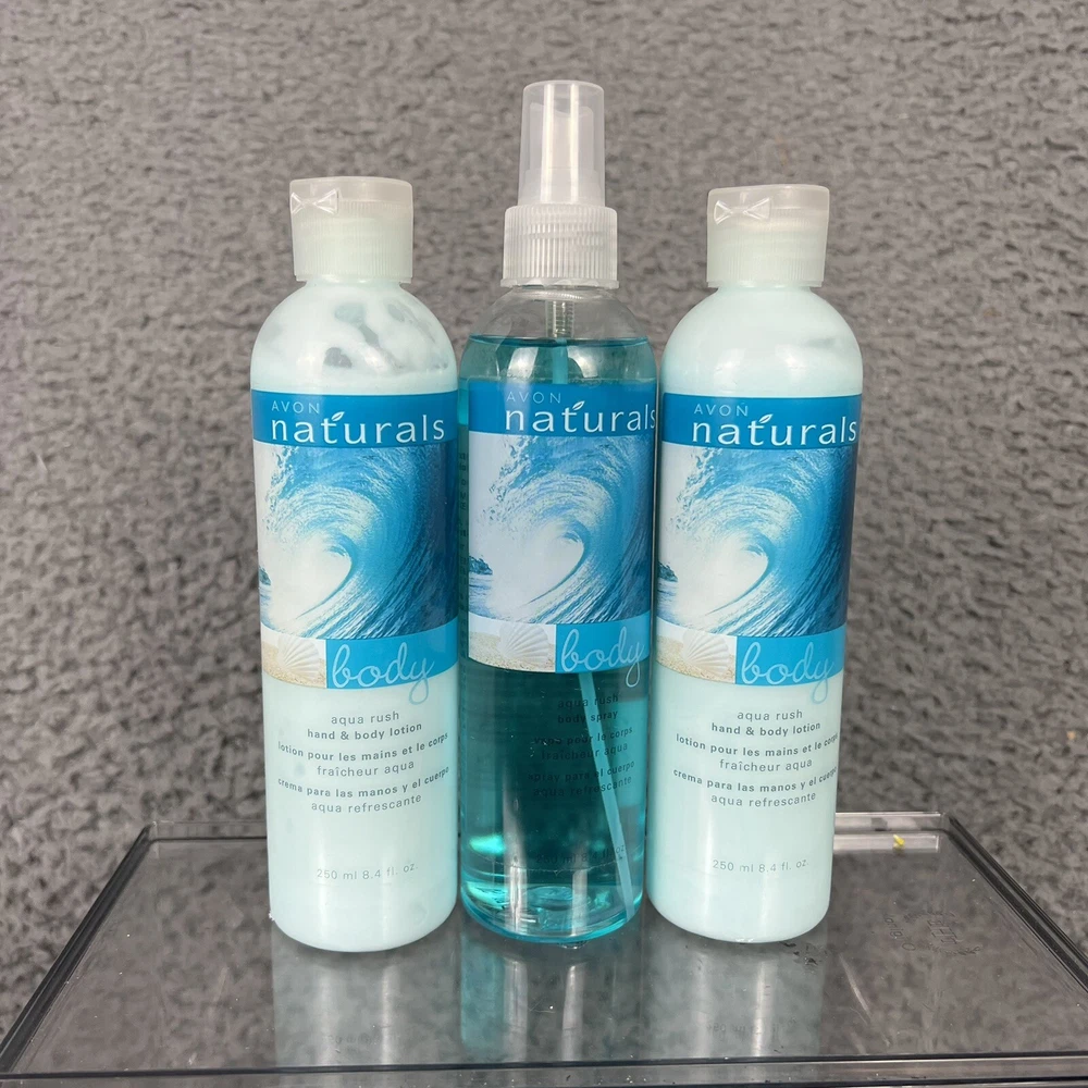 Avon Naturals Aqua Rush Nourishing Body Spray & 2 Lotions 8.4 oz DISCONTINUED.